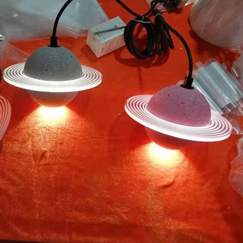 Contemporary Creative Planet Cement Acrylic LED Pendant Light For Bedroom