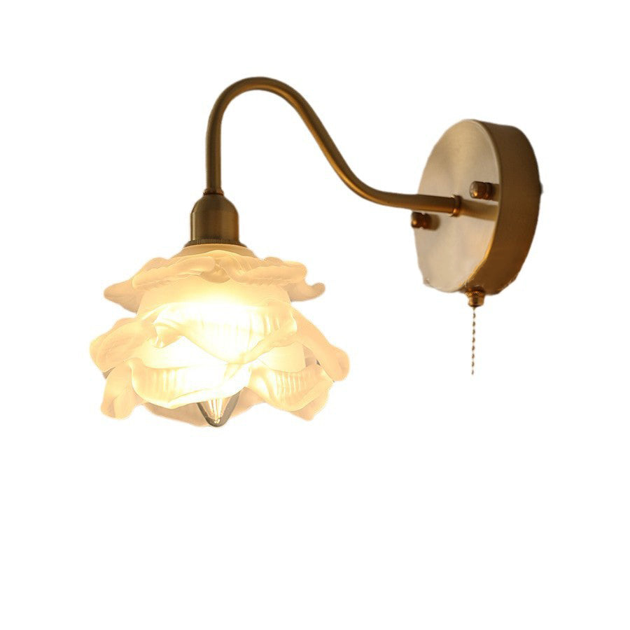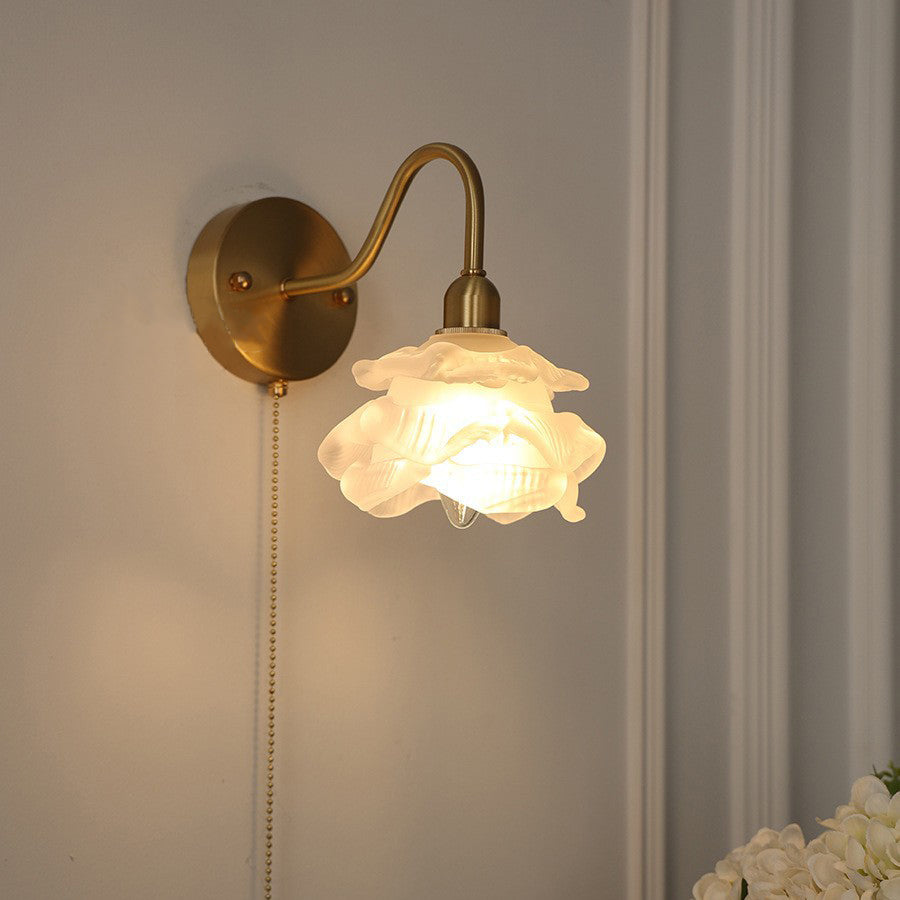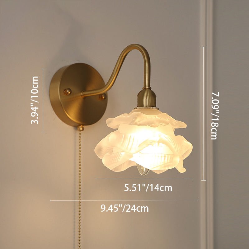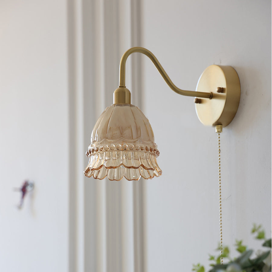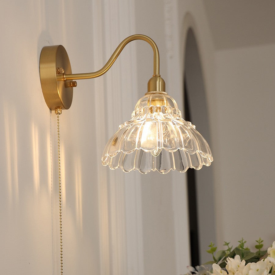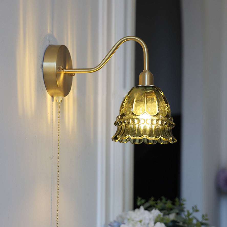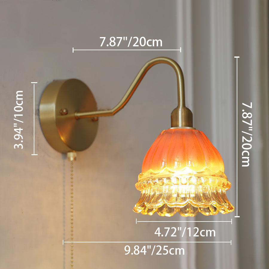 Contemporary Creative Pull Wire Rose Bell Flower Jellyfish Shape Brass Glass 1-Light Wall Sconce Lamp For Bedroom