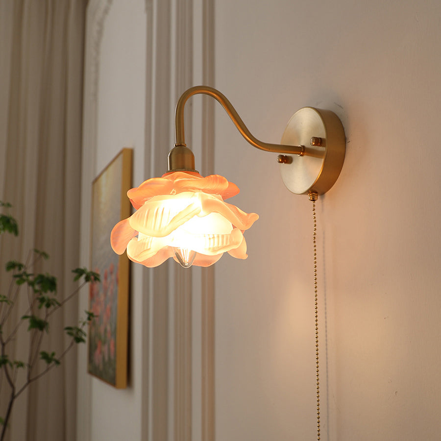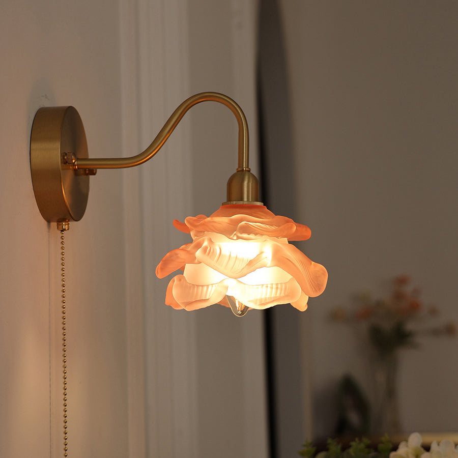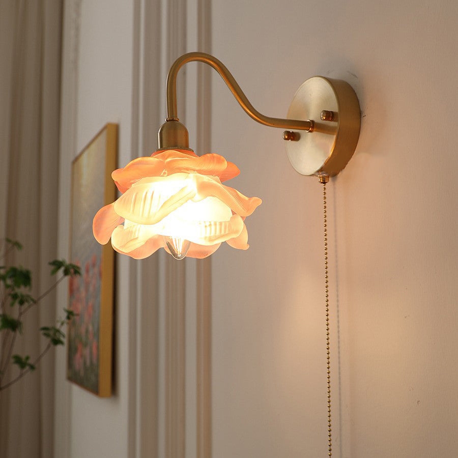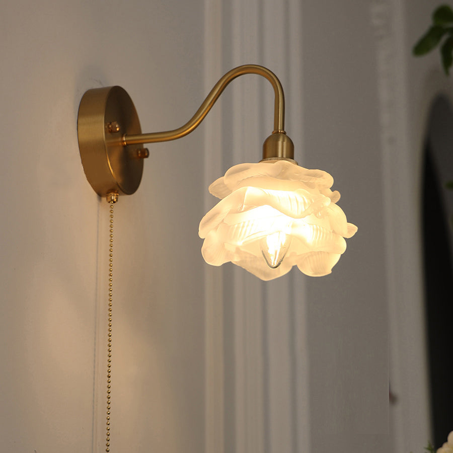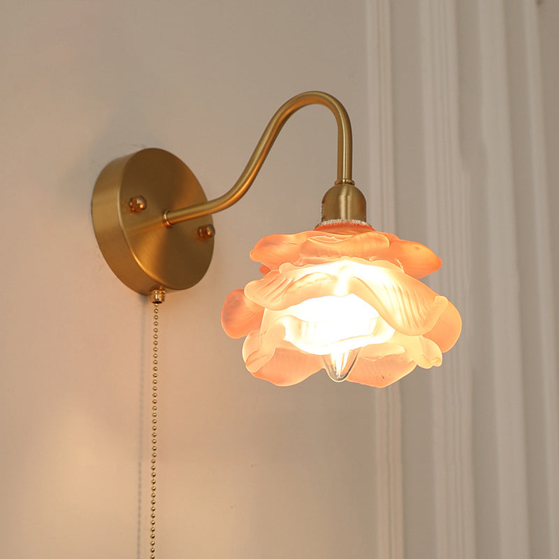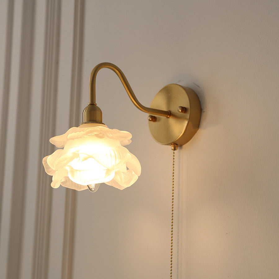 Contemporary Creative Pull Wire Rose Bell Flower Jellyfish Shape Brass Glass 1-Light Wall Sconce Lamp For Bedroom