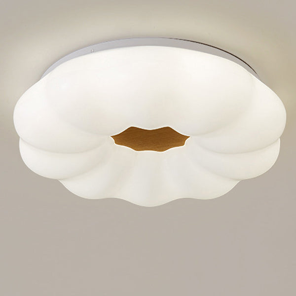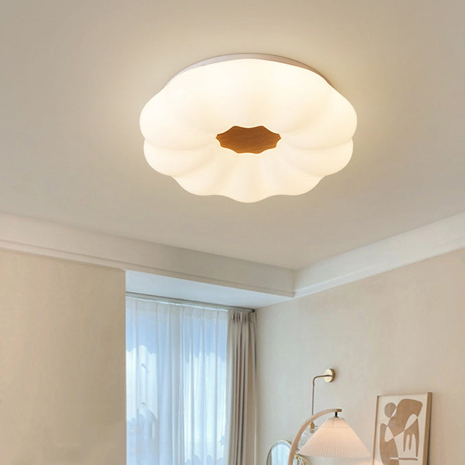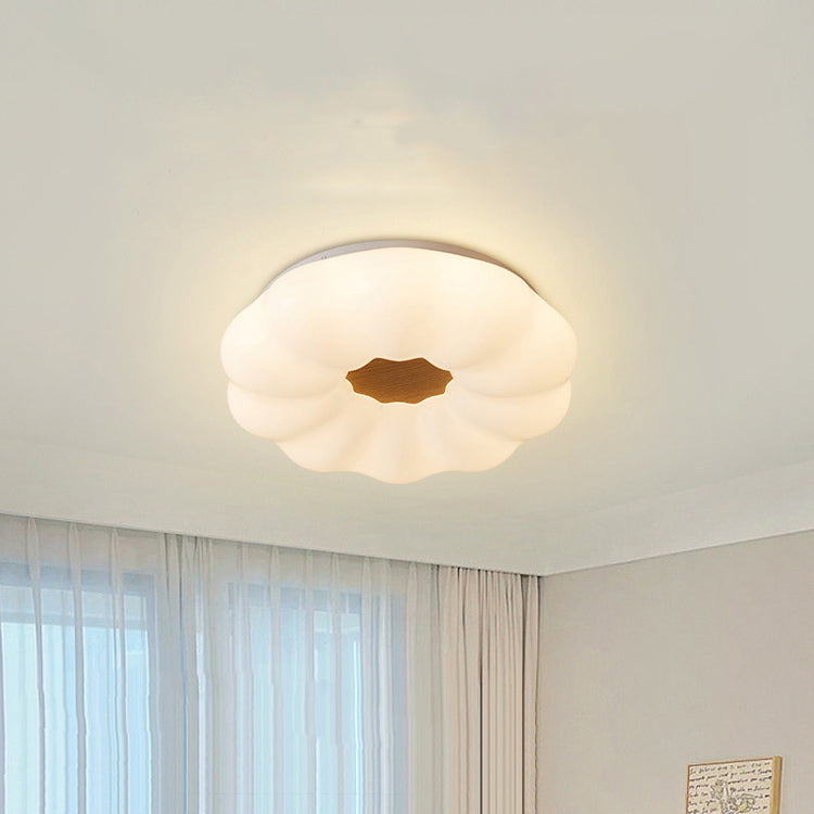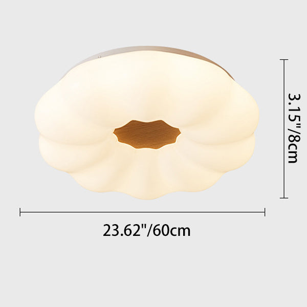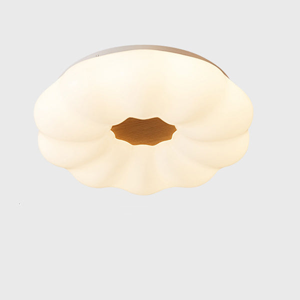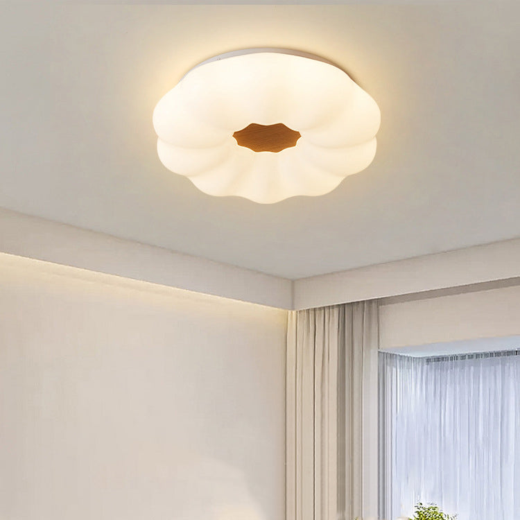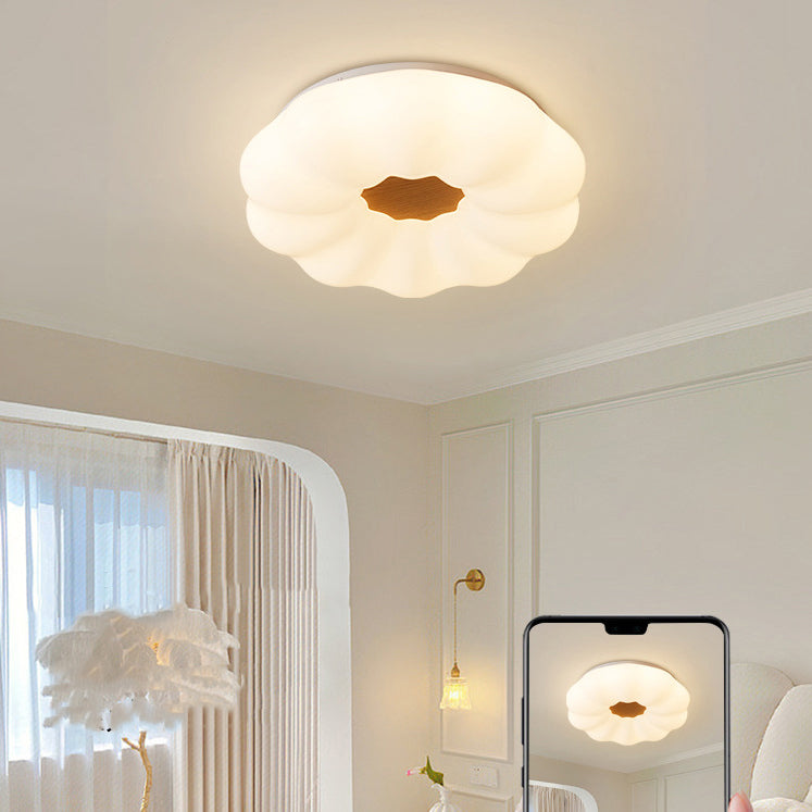 Contemporary Creative Pumpkin Shape Hardware Wood Acrylic Shade LED Flush Mount Ceiling Light For Bedroom