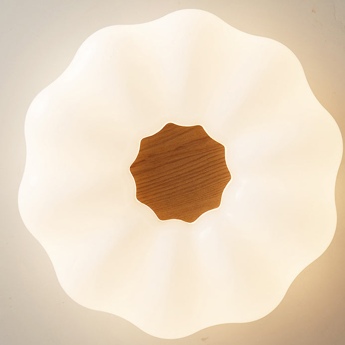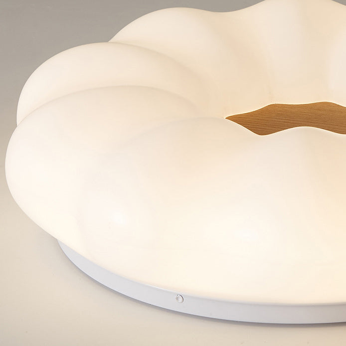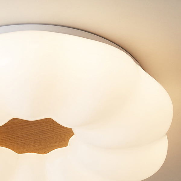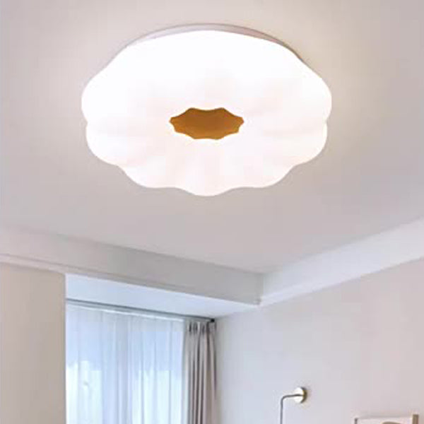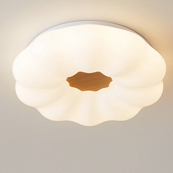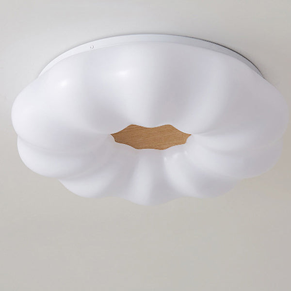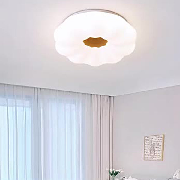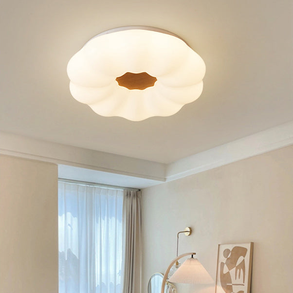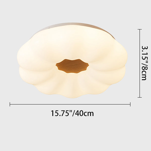 Contemporary Creative Pumpkin Shape Hardware Wood Acrylic Shade LED Flush Mount Ceiling Light For Bedroom