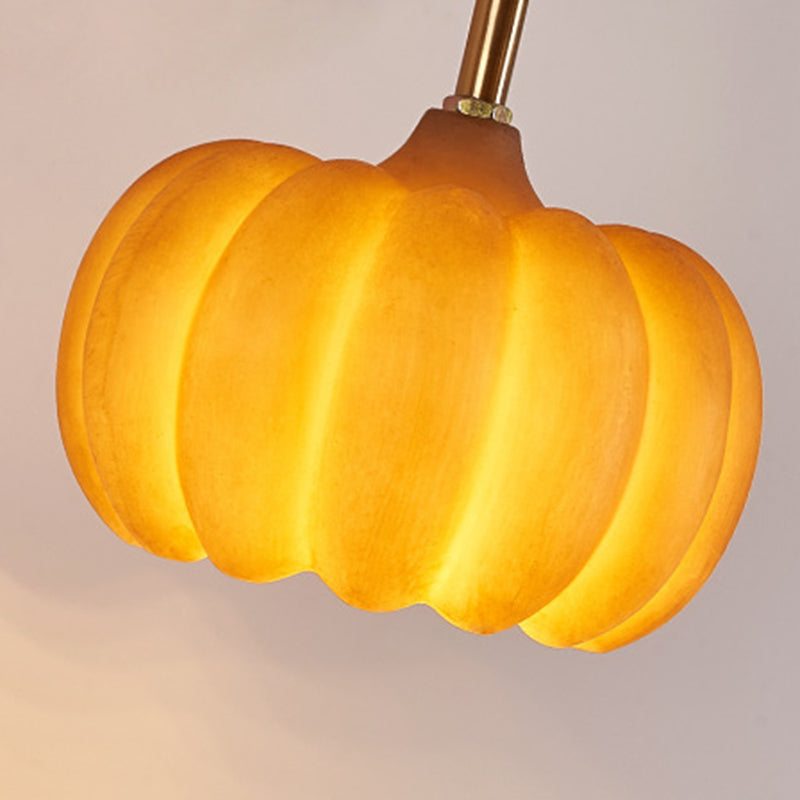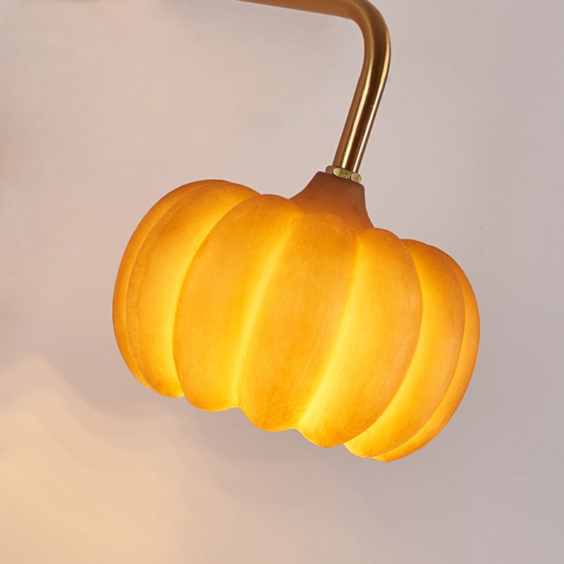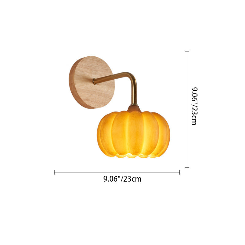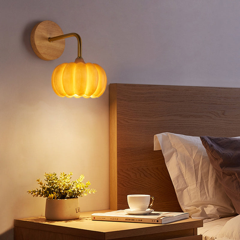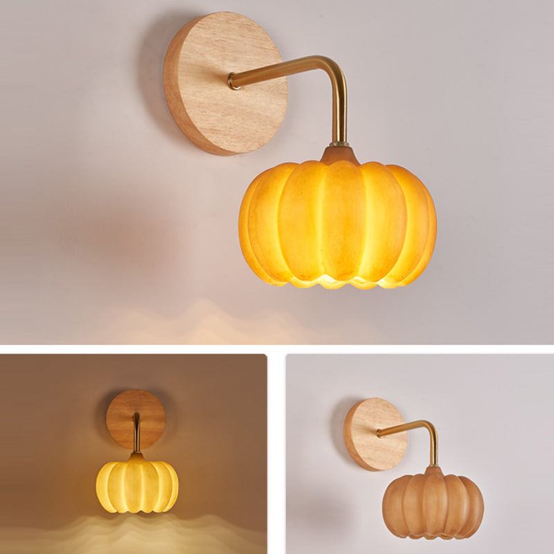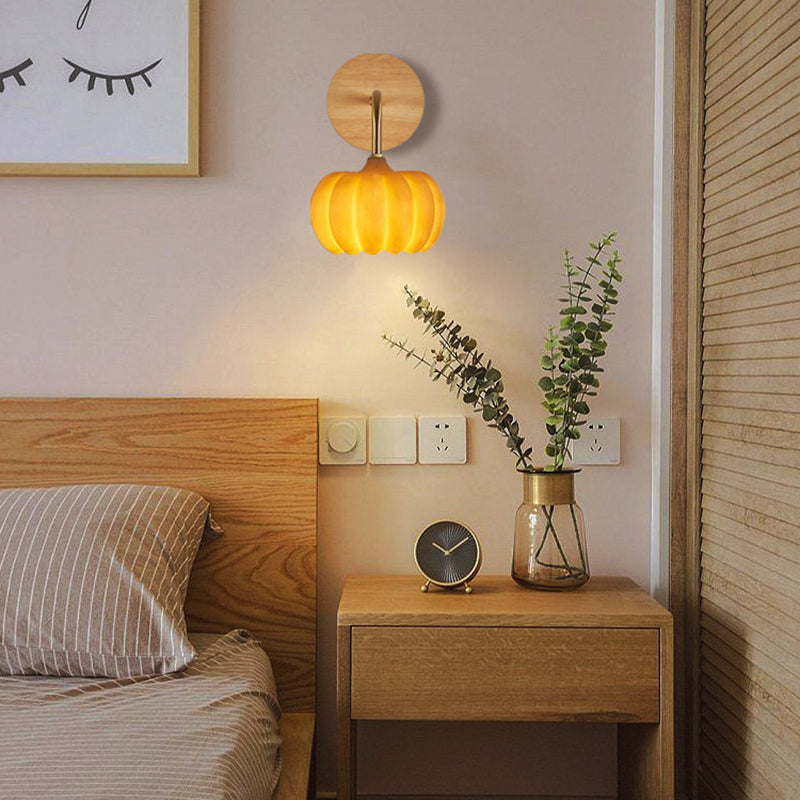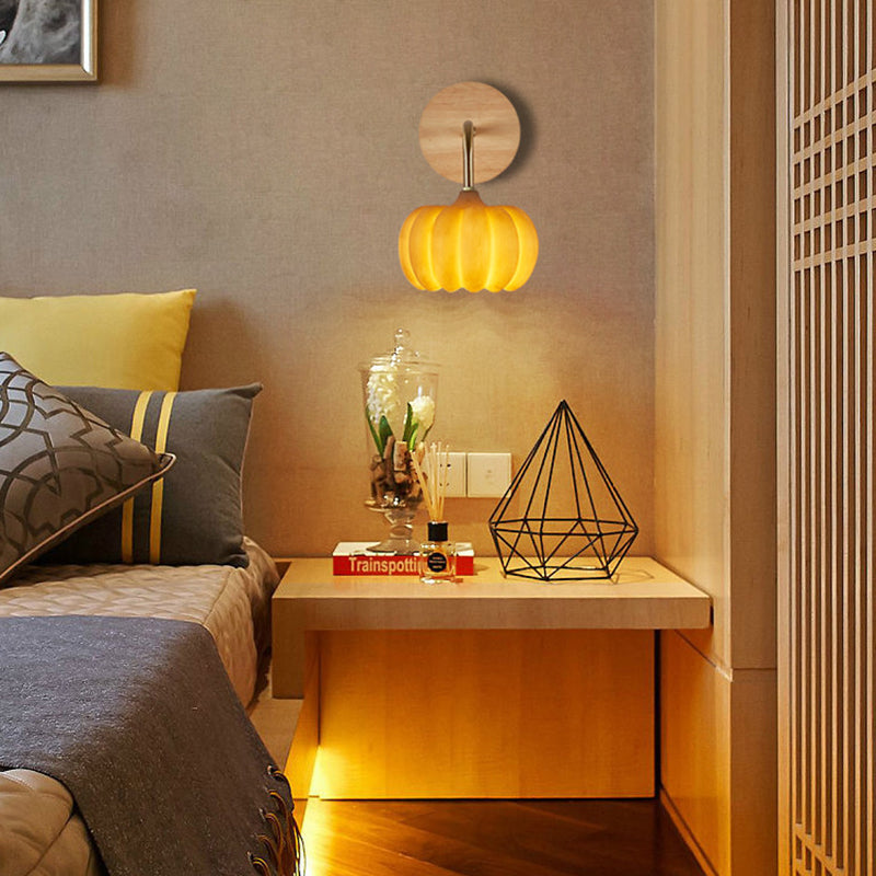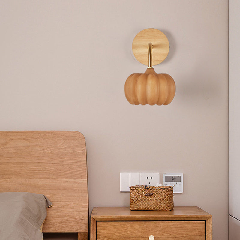 Contemporary Creative Pumpkin Solid Wood Resin 1-Light Wall Sconce Lamp For Living Room