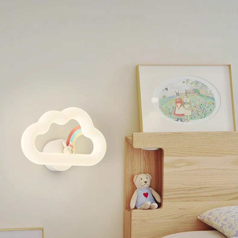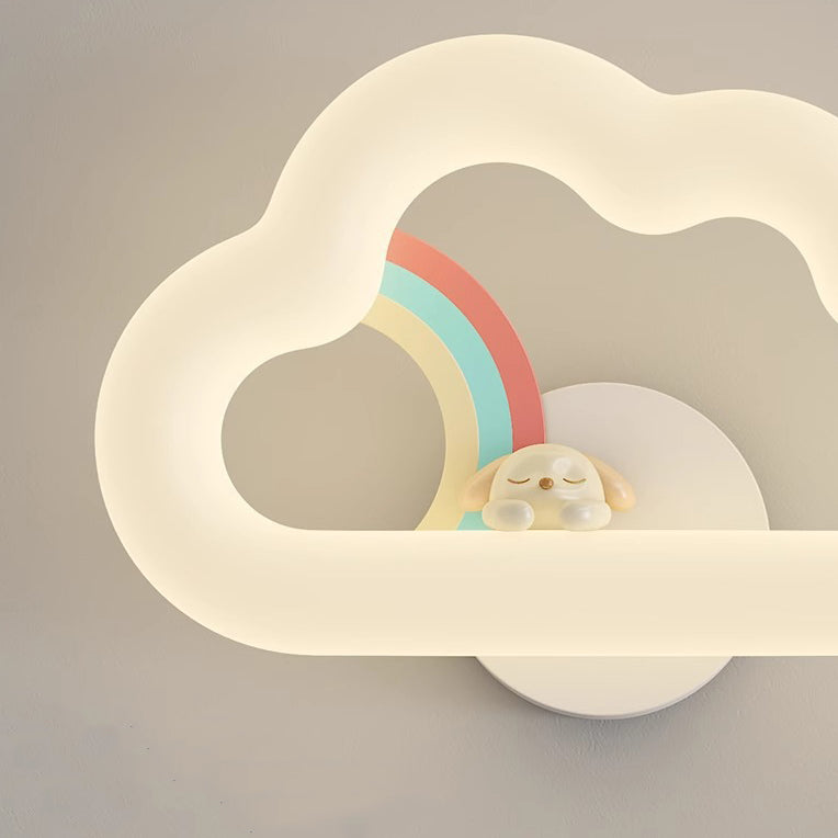 Contemporary Creative Rainbow Rabbit Iron PE Cloud Shade LED Wall Sconce Lamp For Dining Room