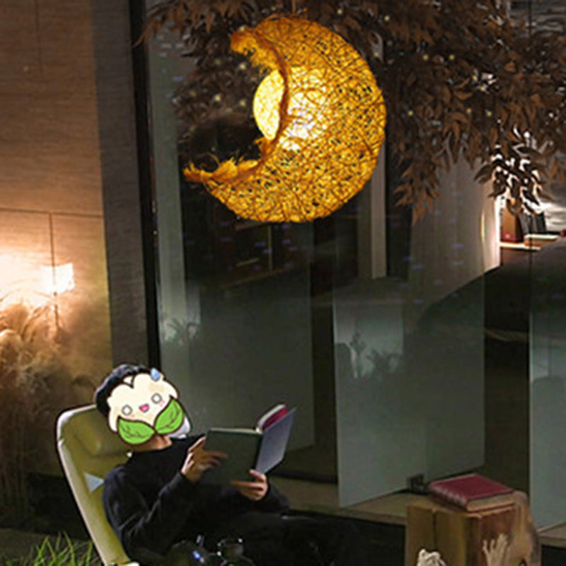 Contemporary Creative Rattan Moon Orb Twine Rope 1-Light Pendant Light For Living Room