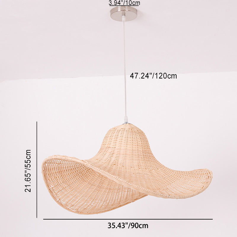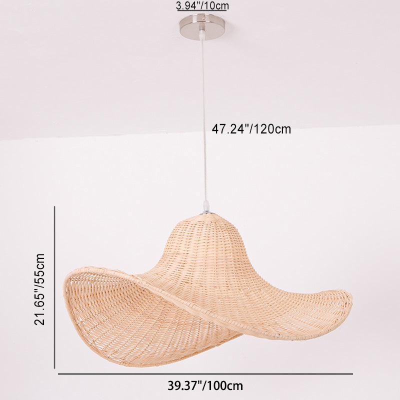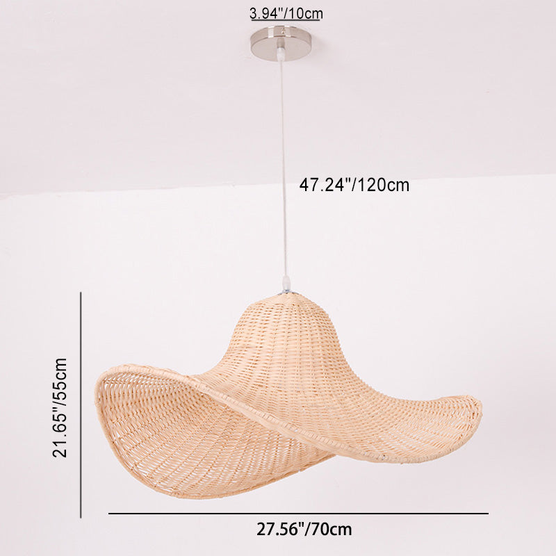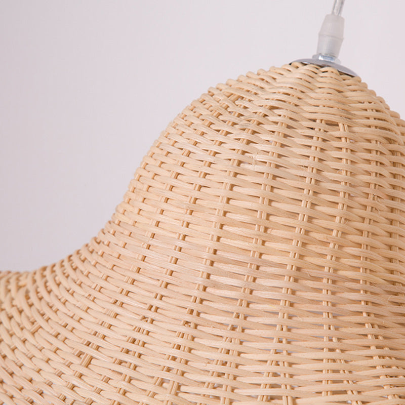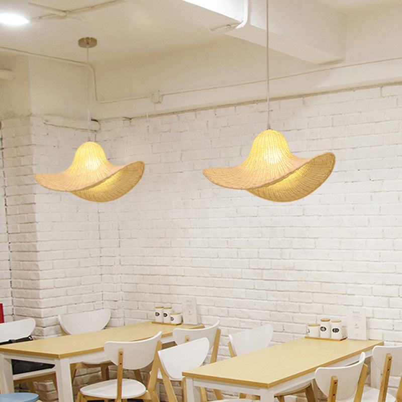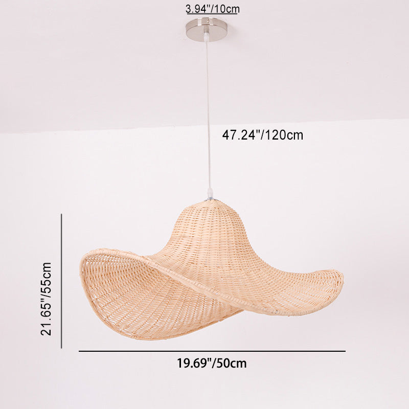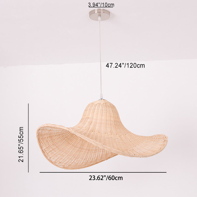 Contemporary Creative Rattan Weaving Iron Hat 1-Light Pendant Light For Dining Room