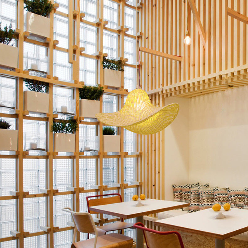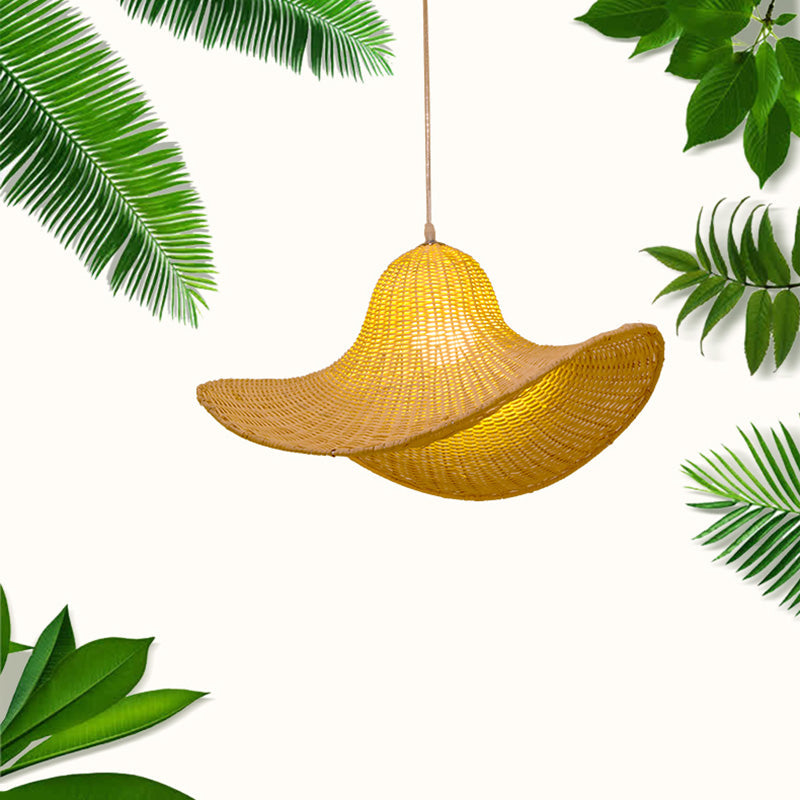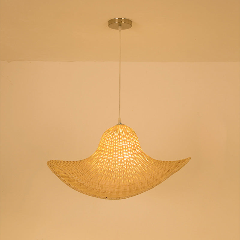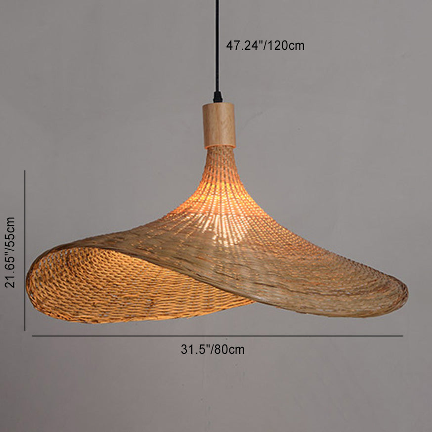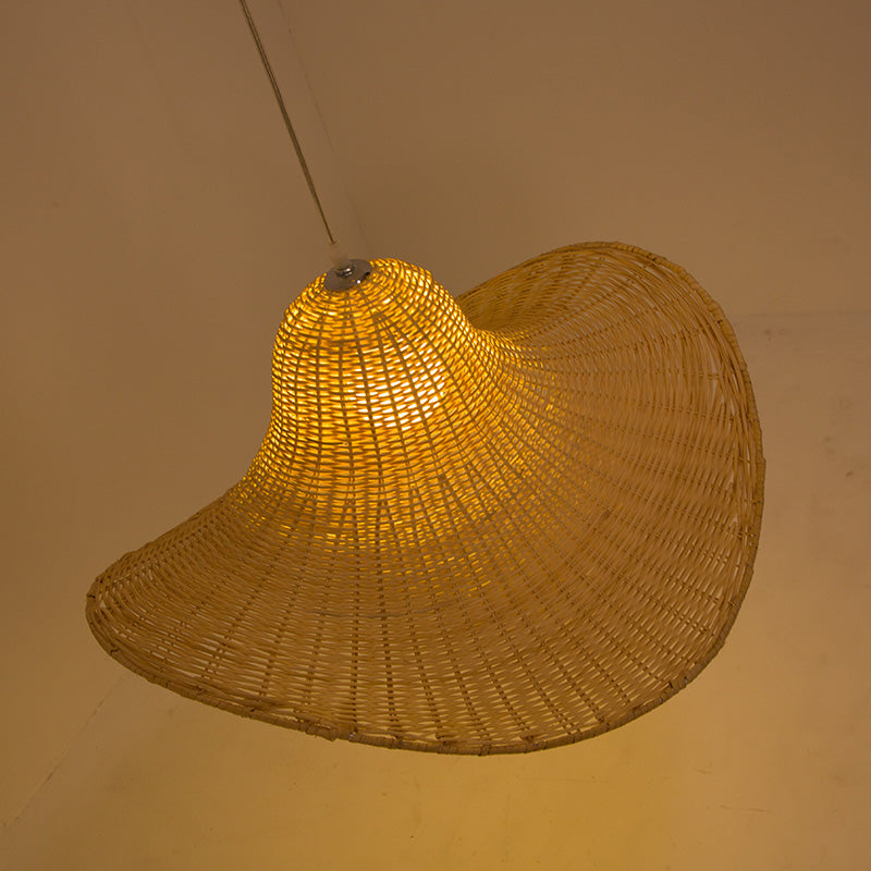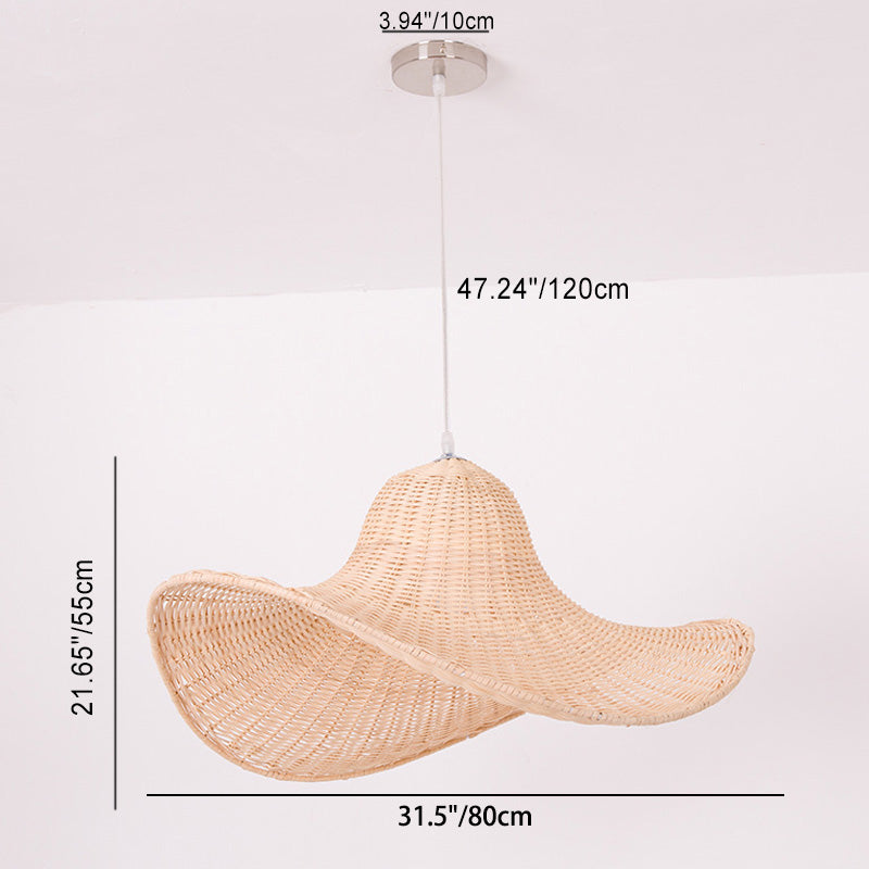 Contemporary Creative Rattan Weaving Iron Hat 1-Light Pendant Light For Dining Room