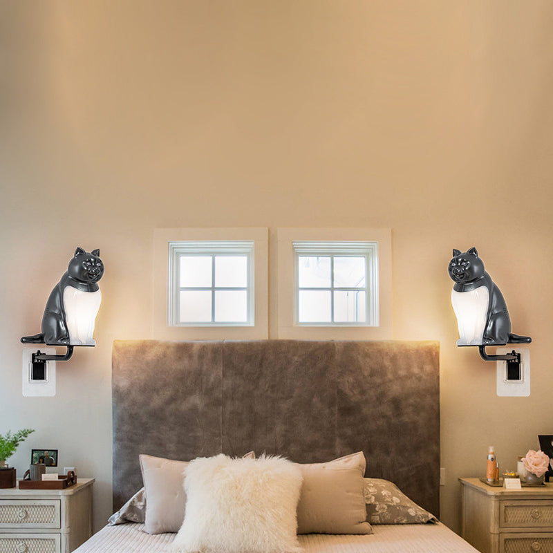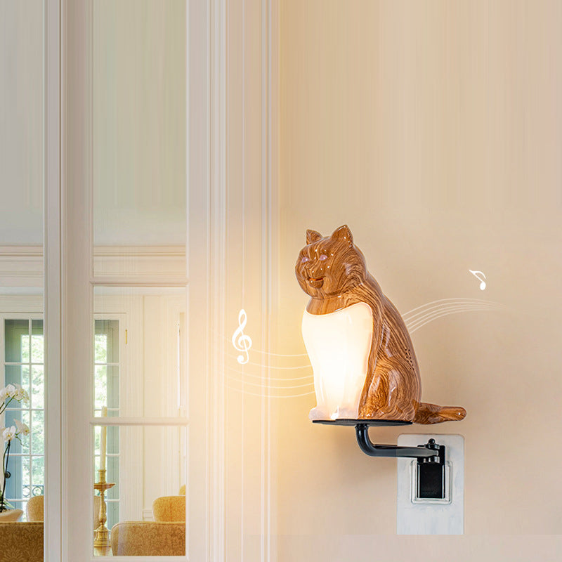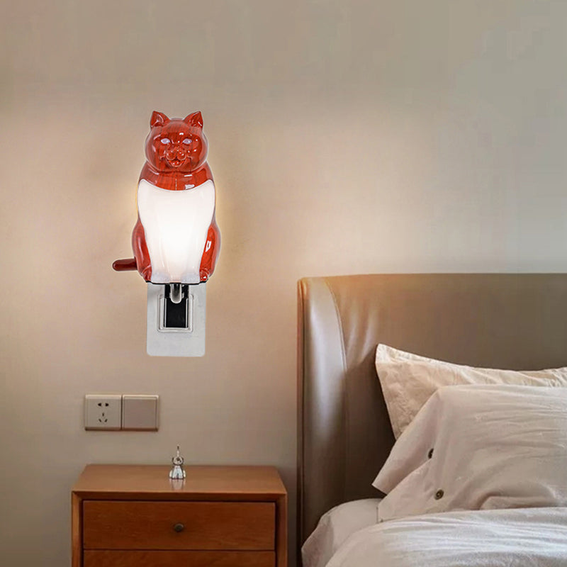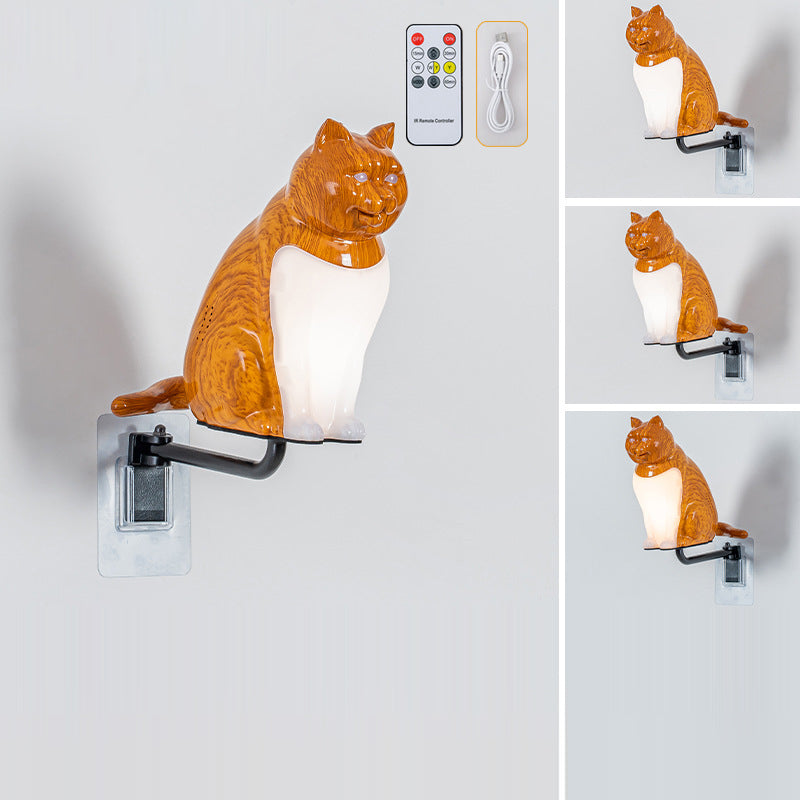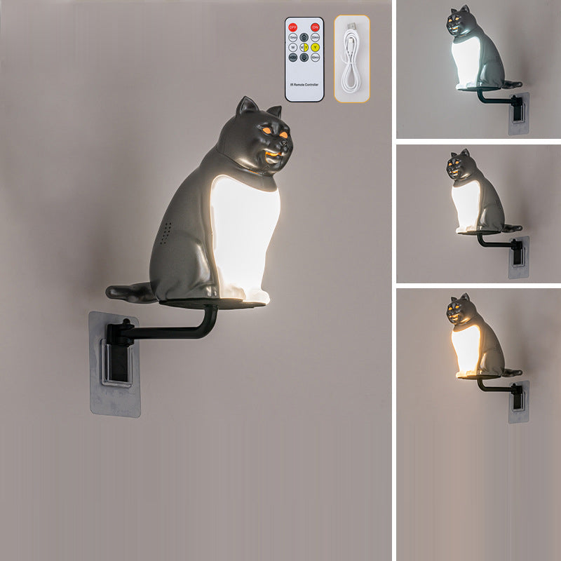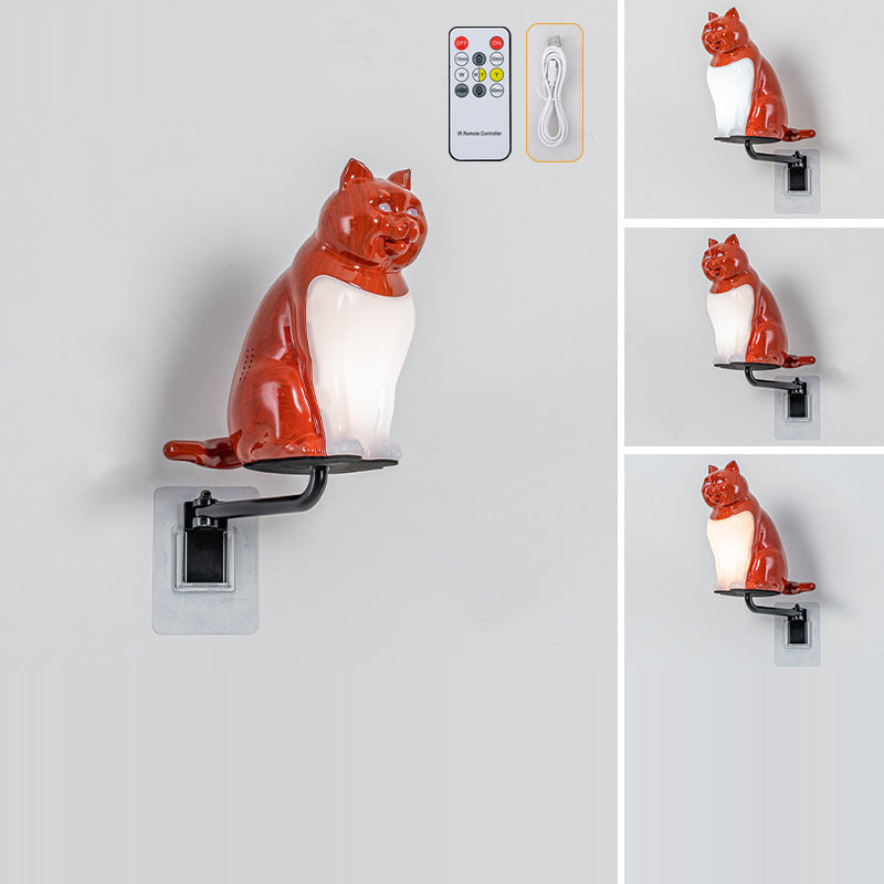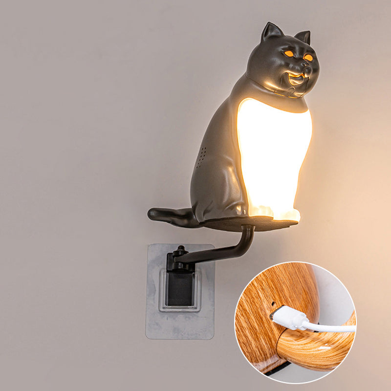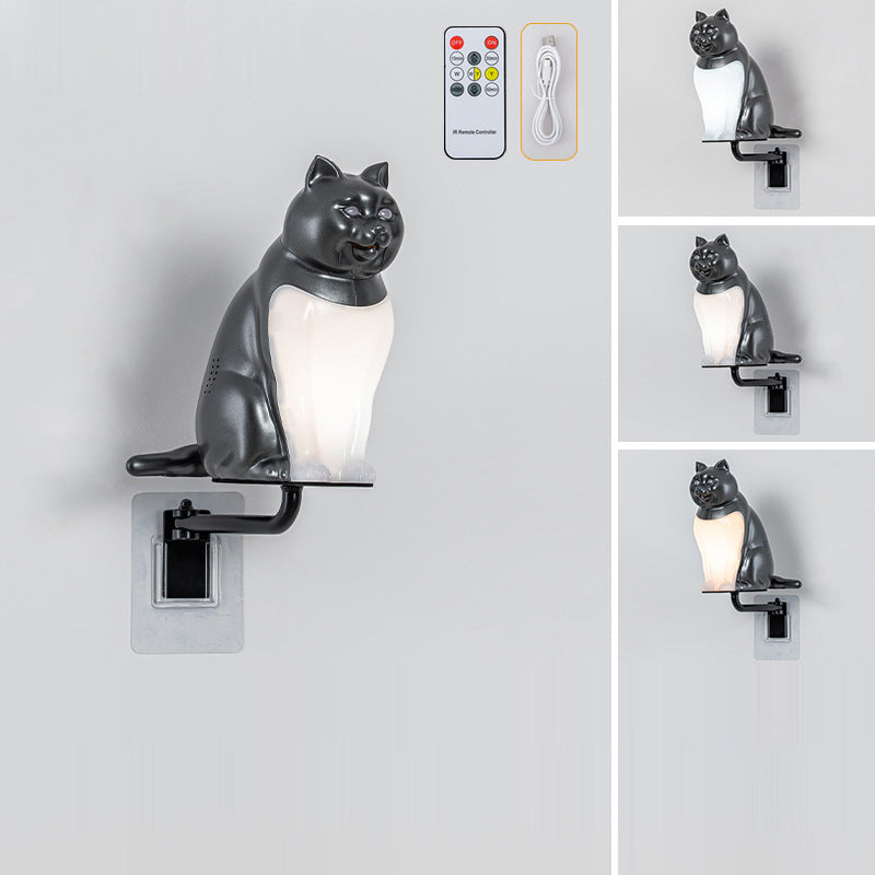 Contemporary Creative Rechargeable ABS & PC Lucky Cat LED Wall Sconce Lamp Night Light For Bedroom & Hallway