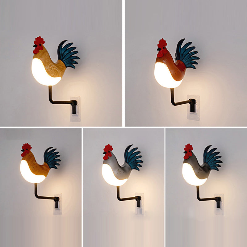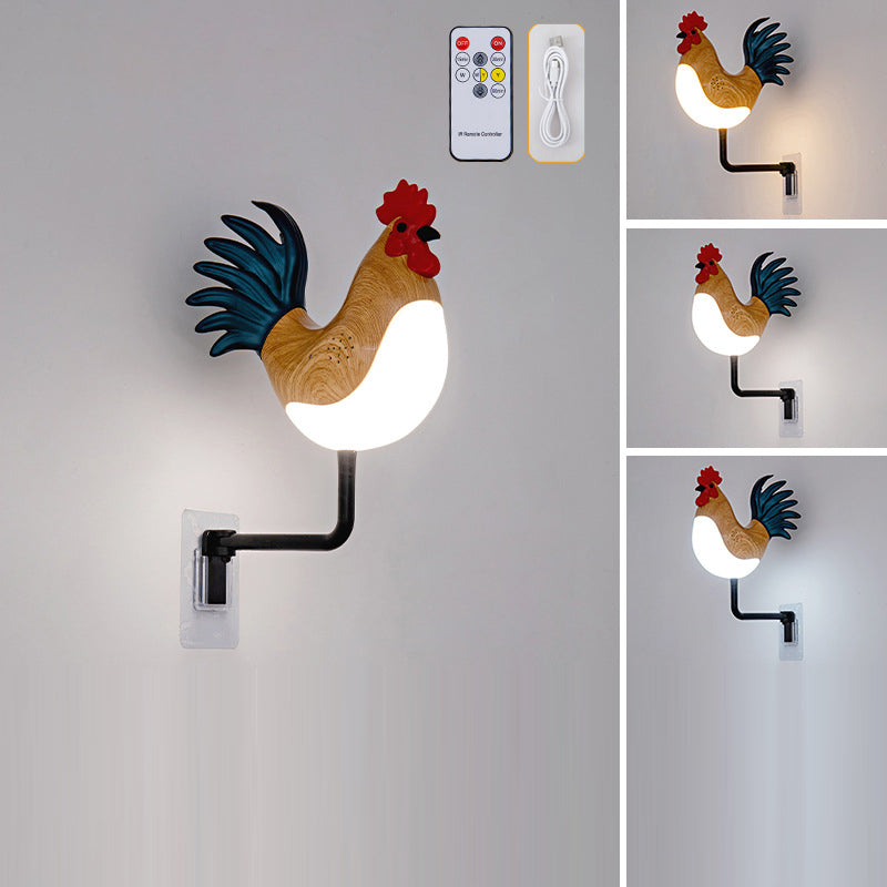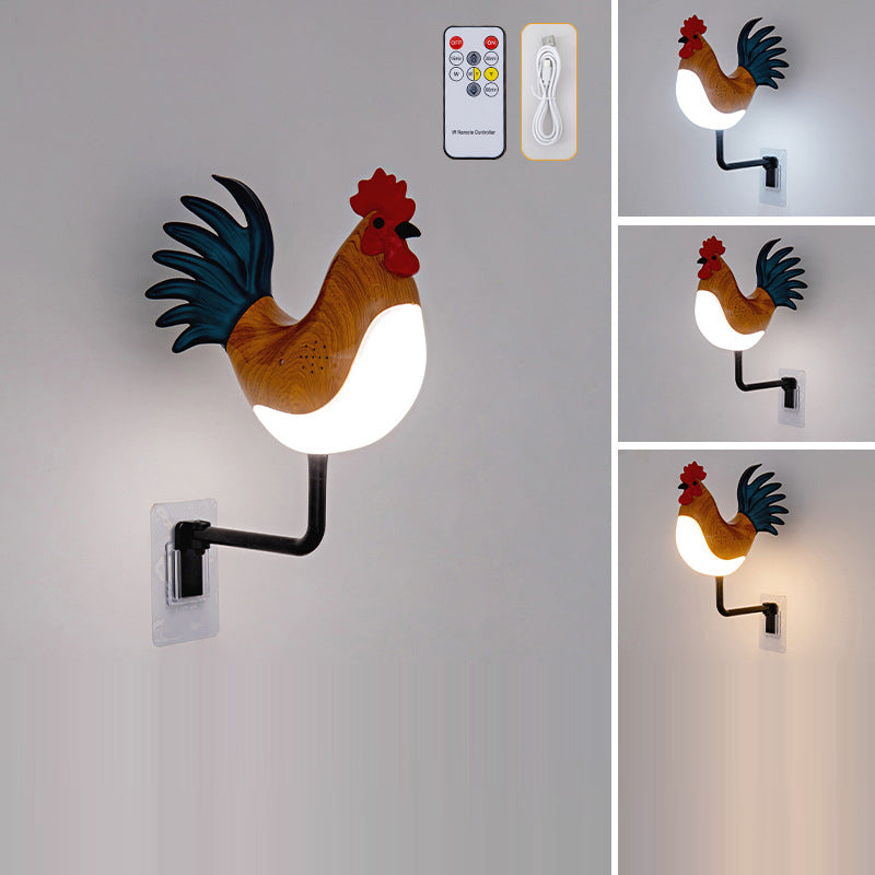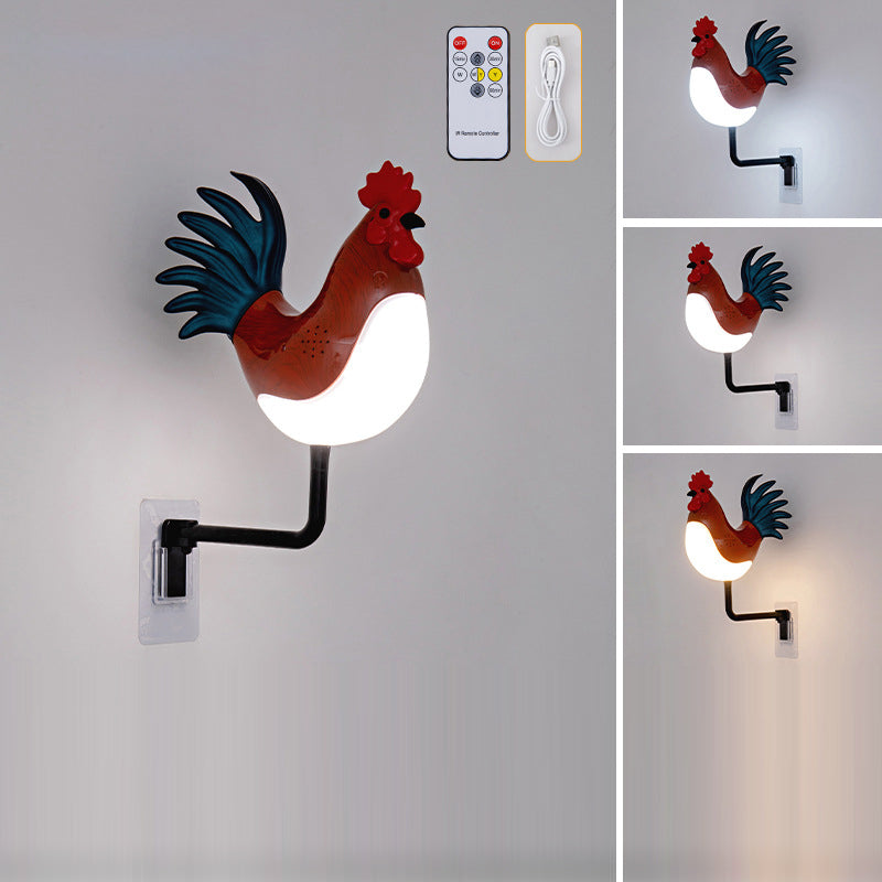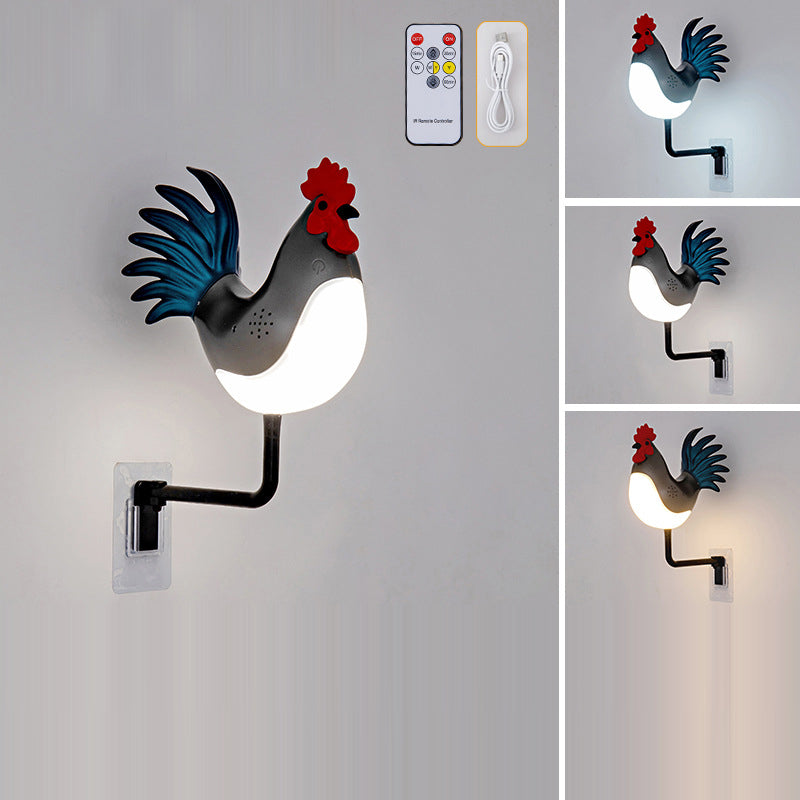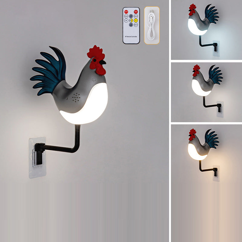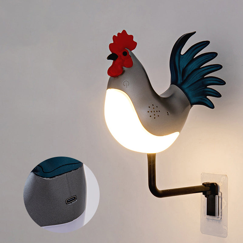 Contemporary Creative Rechargeable ABS & PC Rooster-Shaped LED Wall Sconce Lamp Night Light For Bedroom & Hallway
