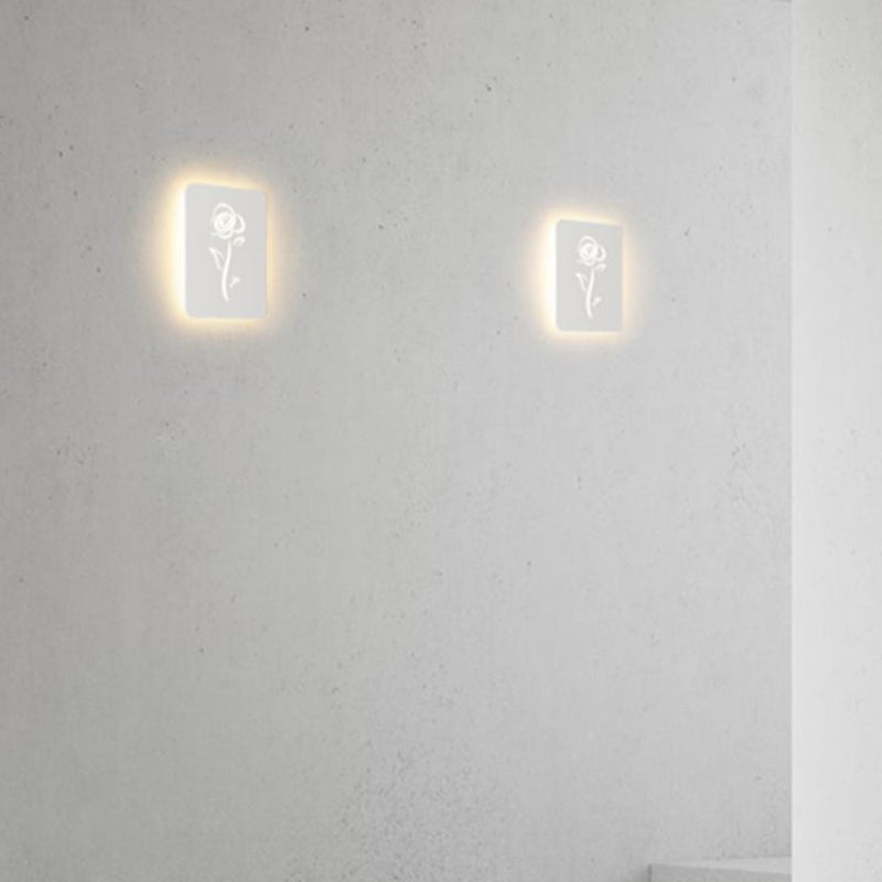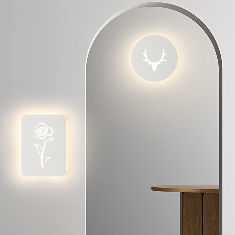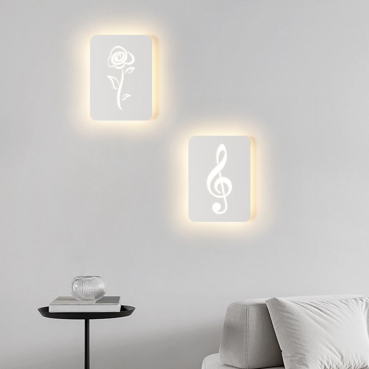 Contemporary Creative Rectangle Round Rose Note Deer Iron Acrylic LED Wall Sconce Lamp For Bedroom