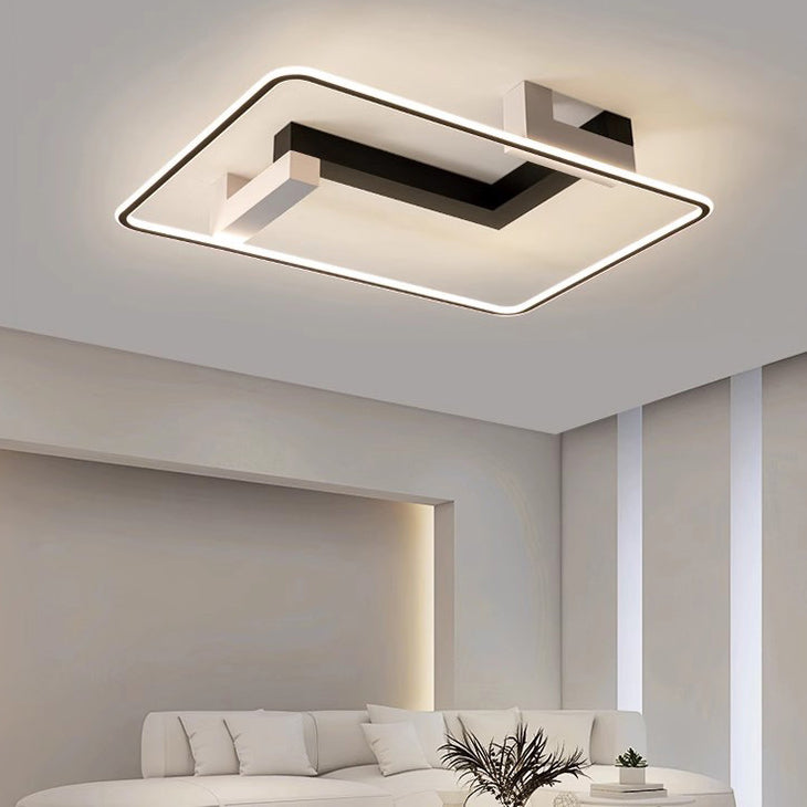 Contemporary Creative Rectangular Acrylic Iron Aluminum LED Semi-Flush Mount Ceiling Light For Living Room