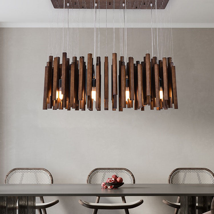 Contemporary Creative Rectangular Wooden 8-Light Island Light Chandelier For Dining Room