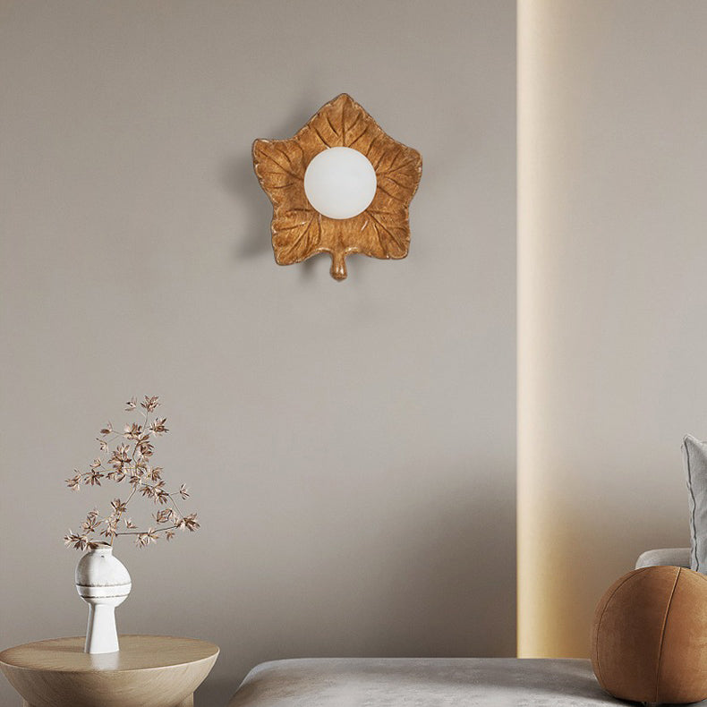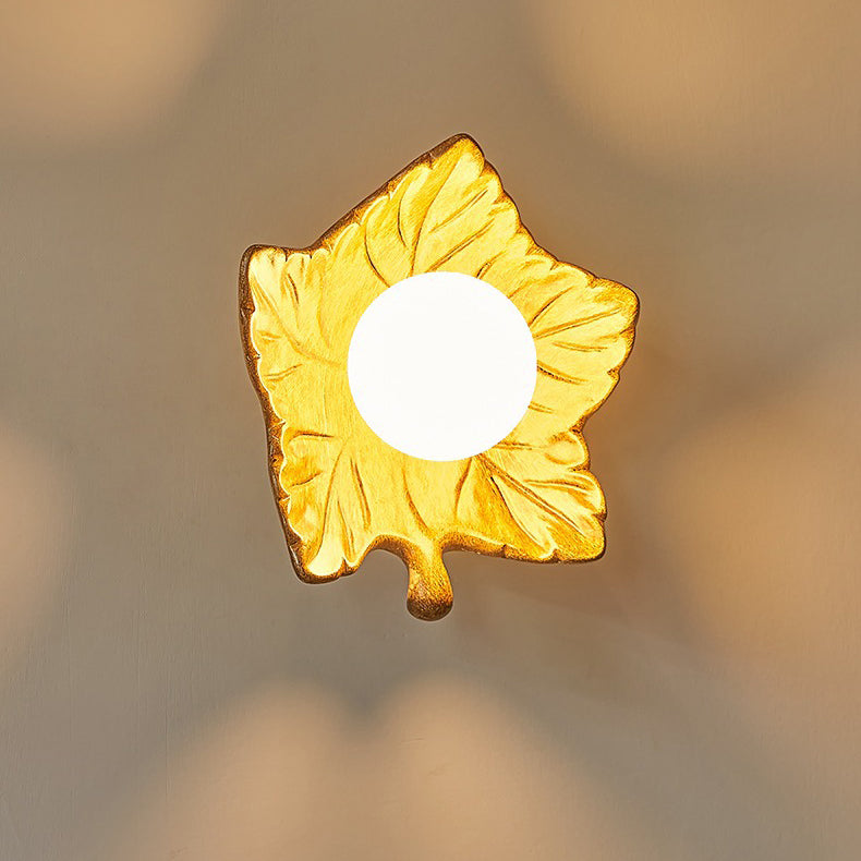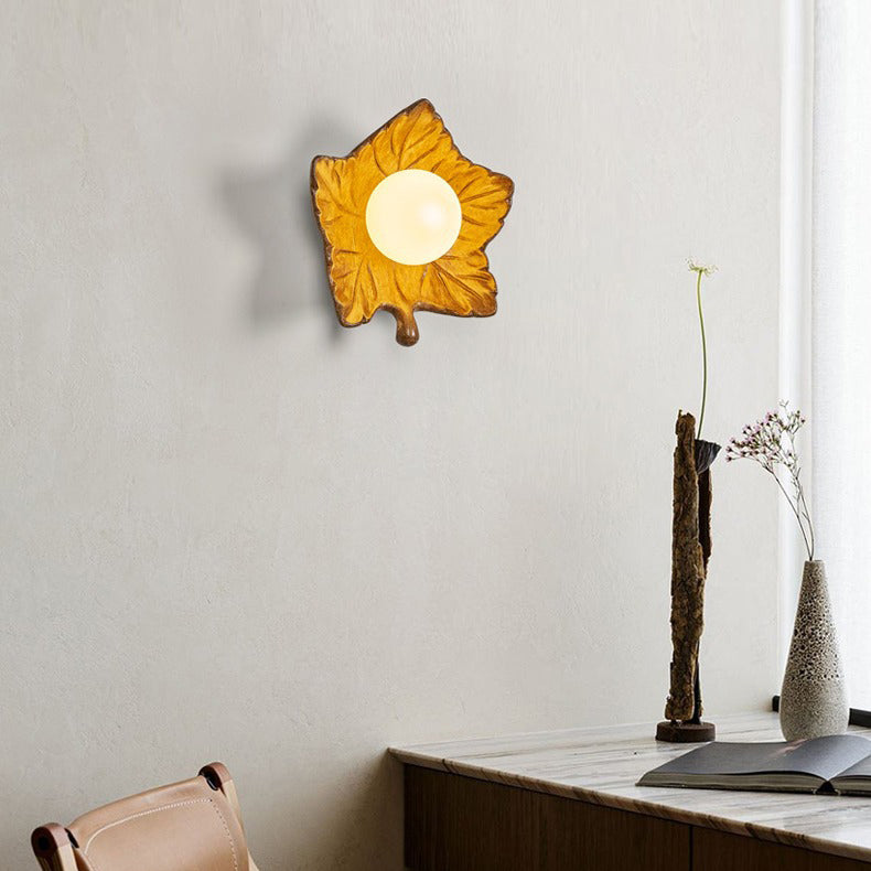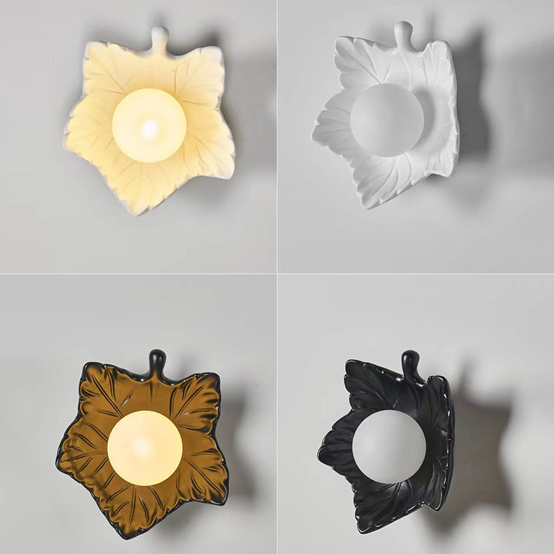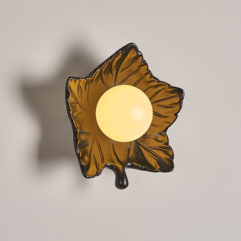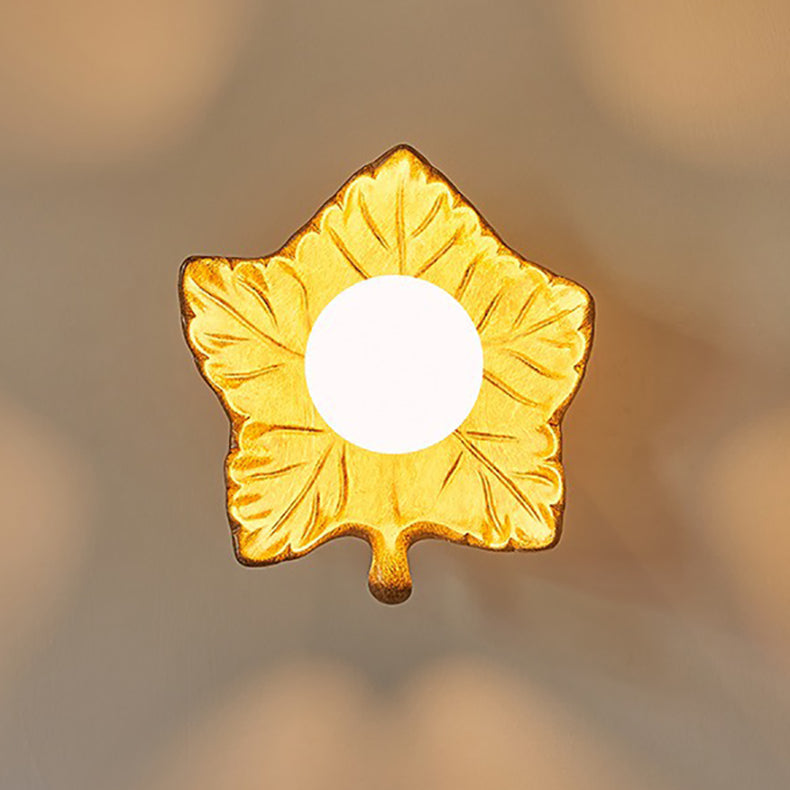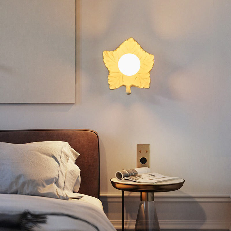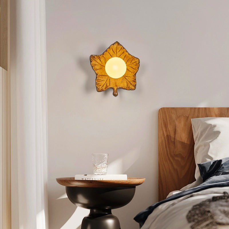 Contemporary Creative Resin Glass Maple Leaf 1-Light Wall Sconce Lamp For Bedside