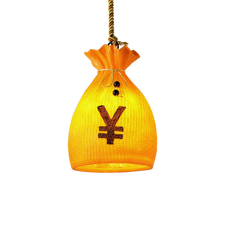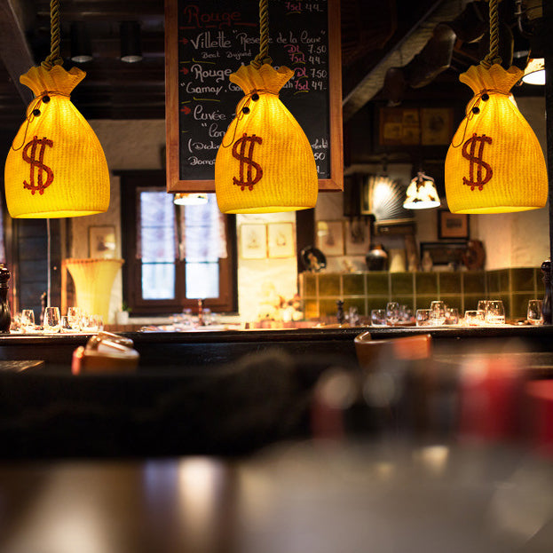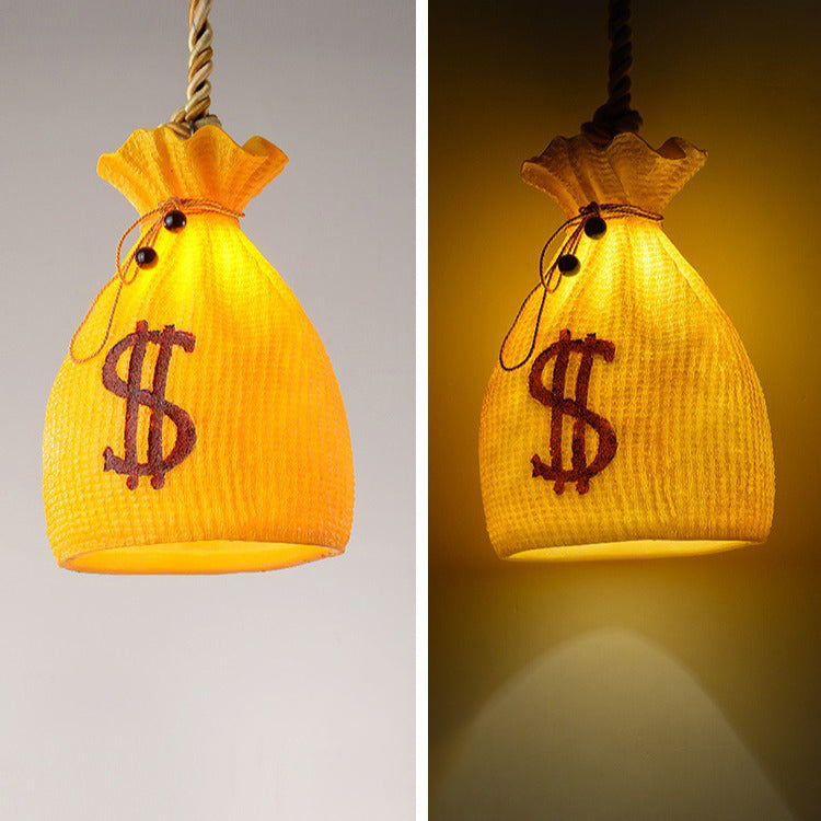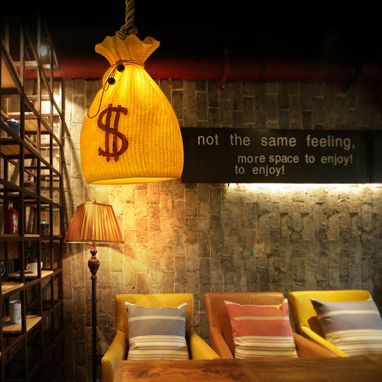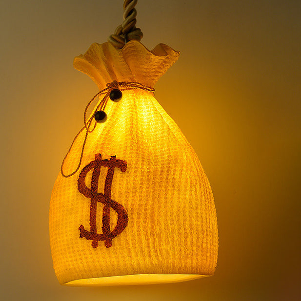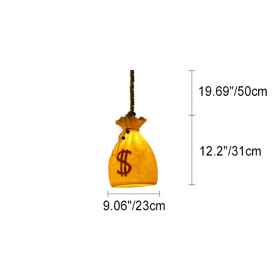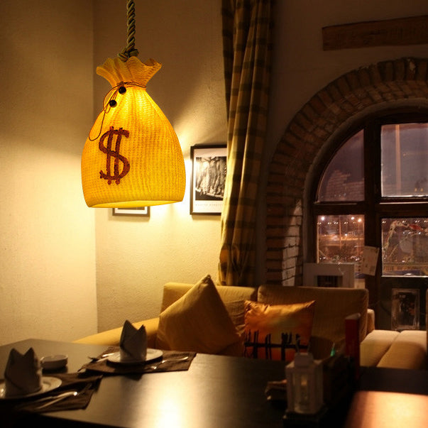 Contemporary Creative Resin Hemp Rope Money Bag Dollar Sign 1-Light Pendant Light For Dining Room