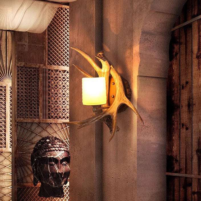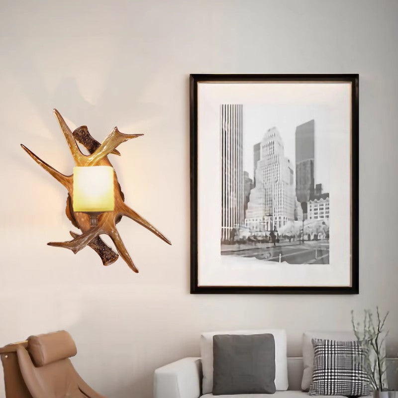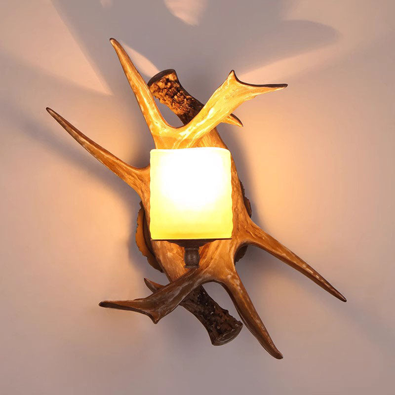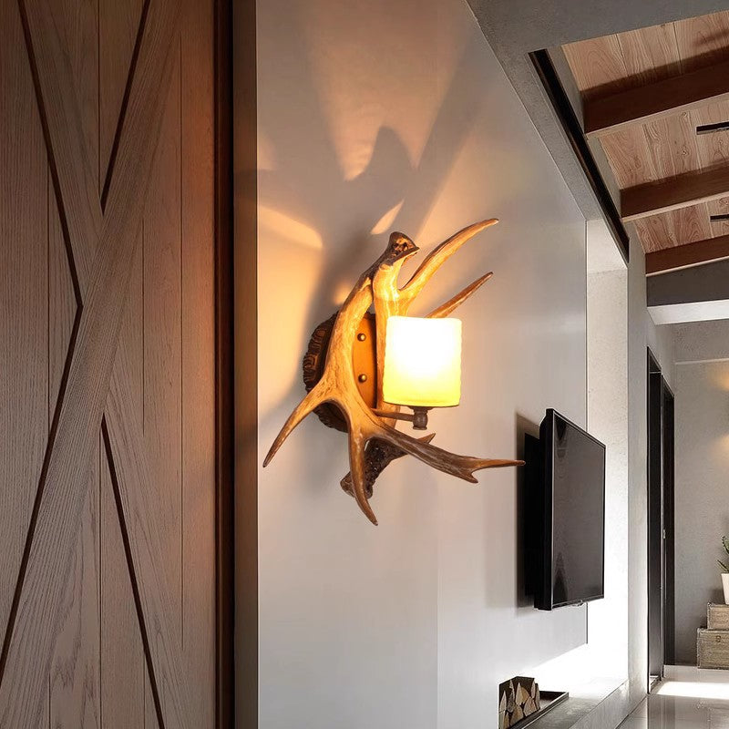 Contemporary Creative Resin Imitation Antler Glass Shade 1-Light Wall Sconce Lamp For Living Room