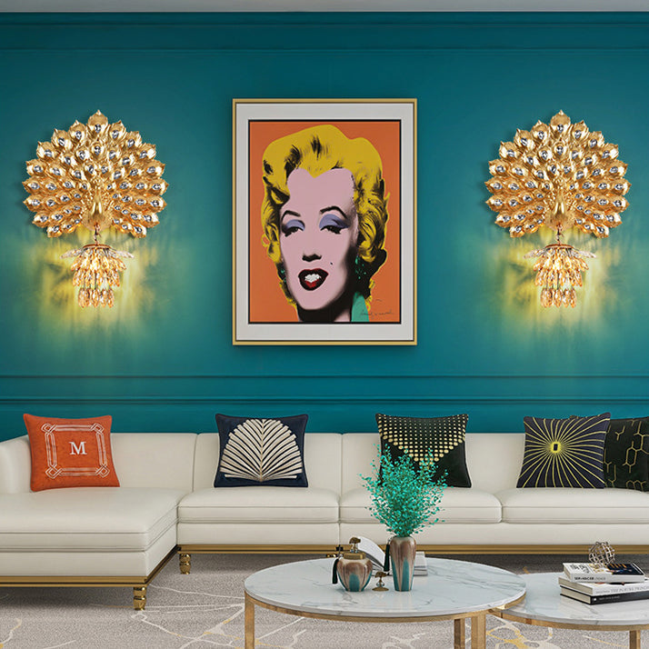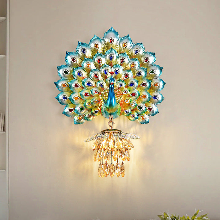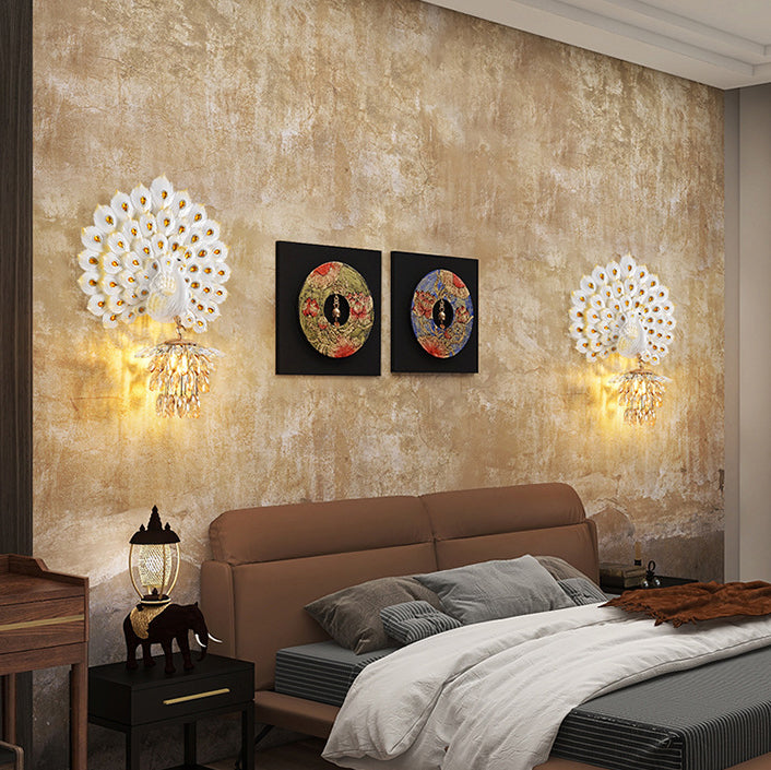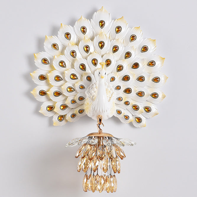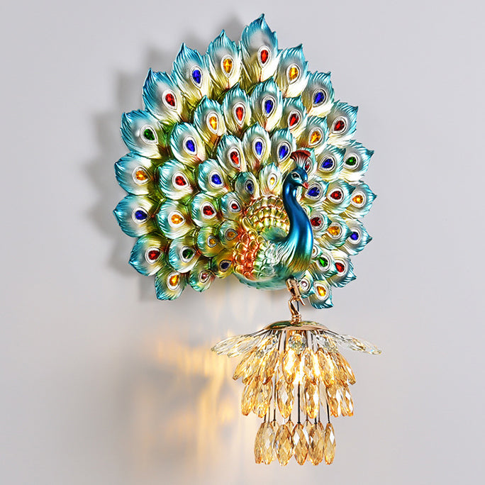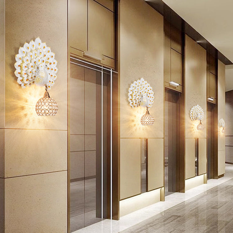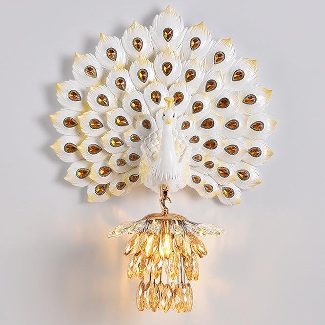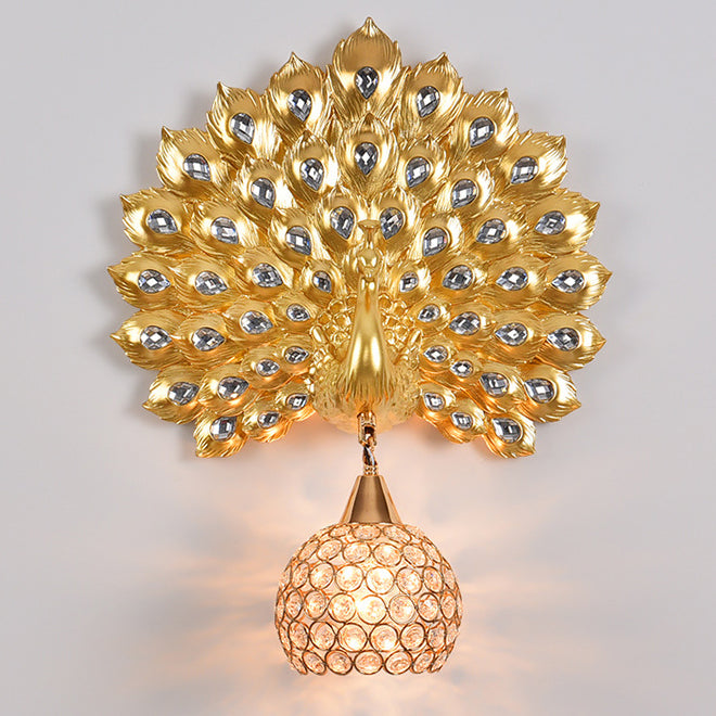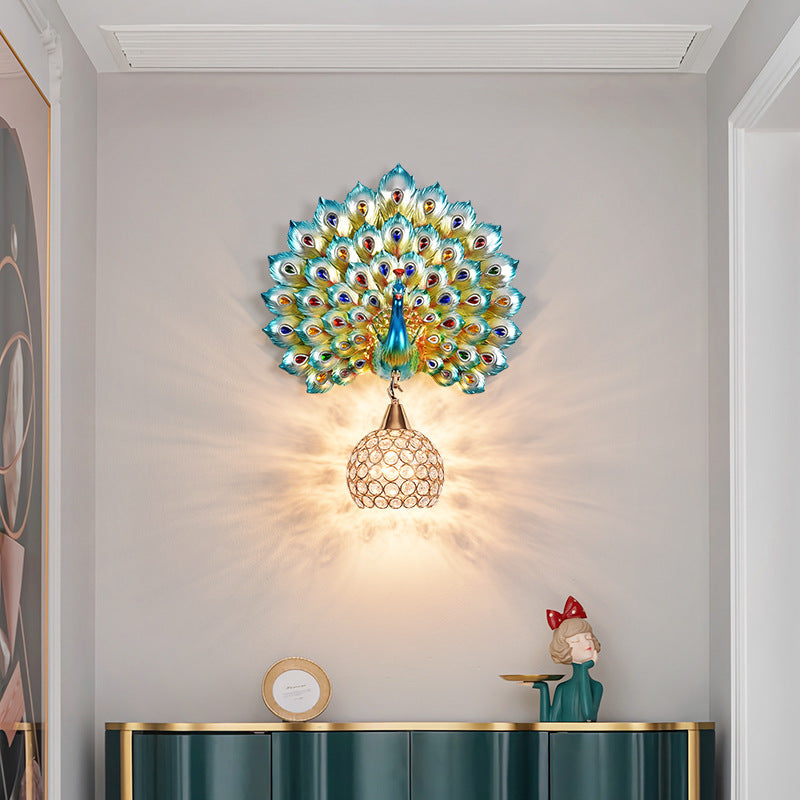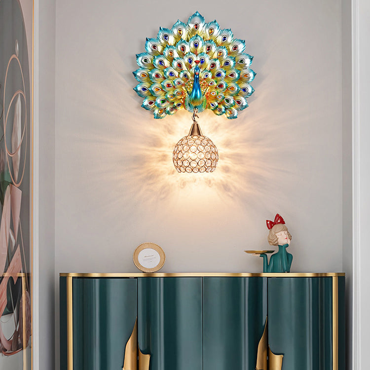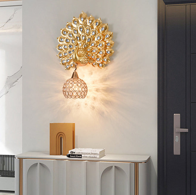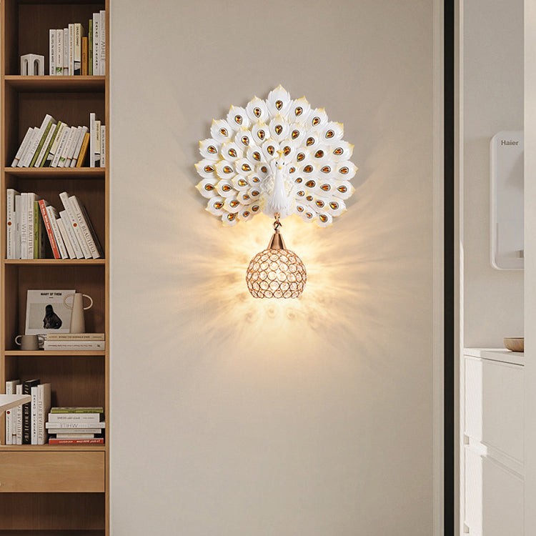 Contemporary Creative Resin Peacock Crystal Ball Shade 1-Light Wall Sconce Lamp For Living Room