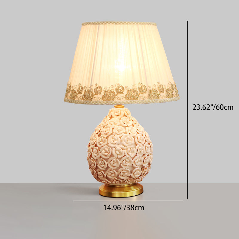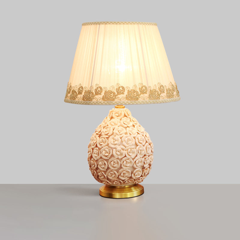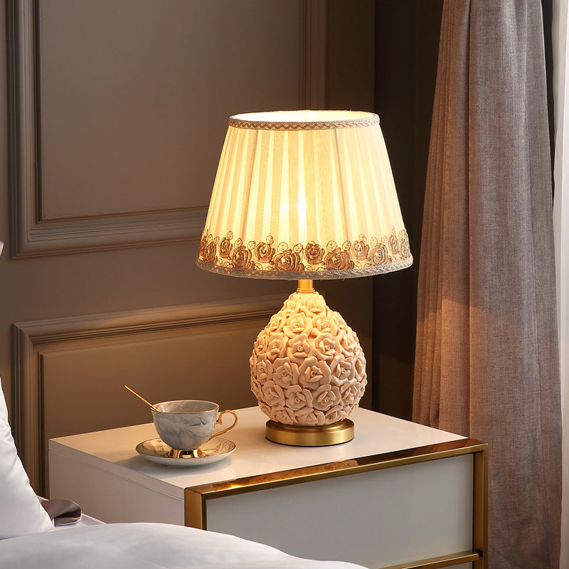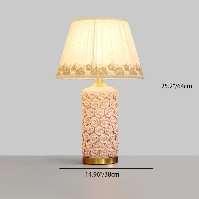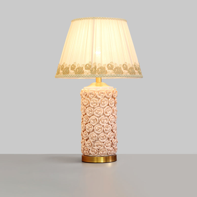 Contemporary Creative Rose Vase Base Cylinder Copper Ceramic Fabric 1-Light Table Lamp For Bedroom