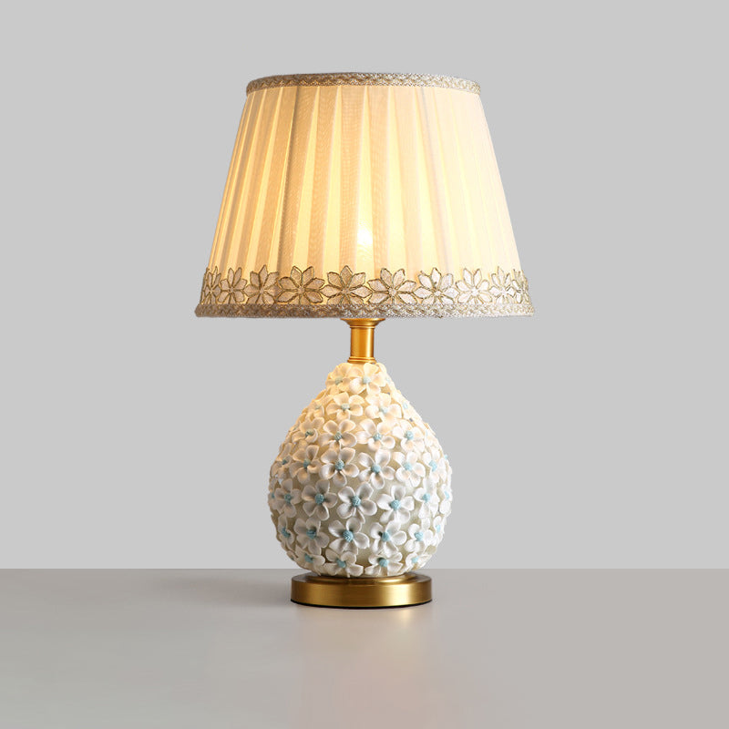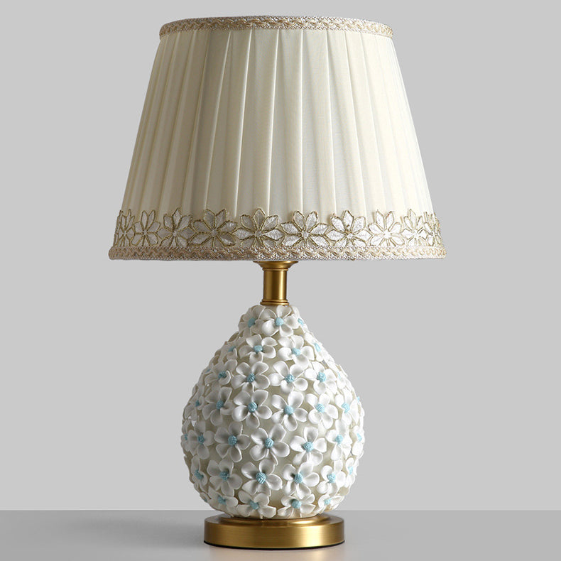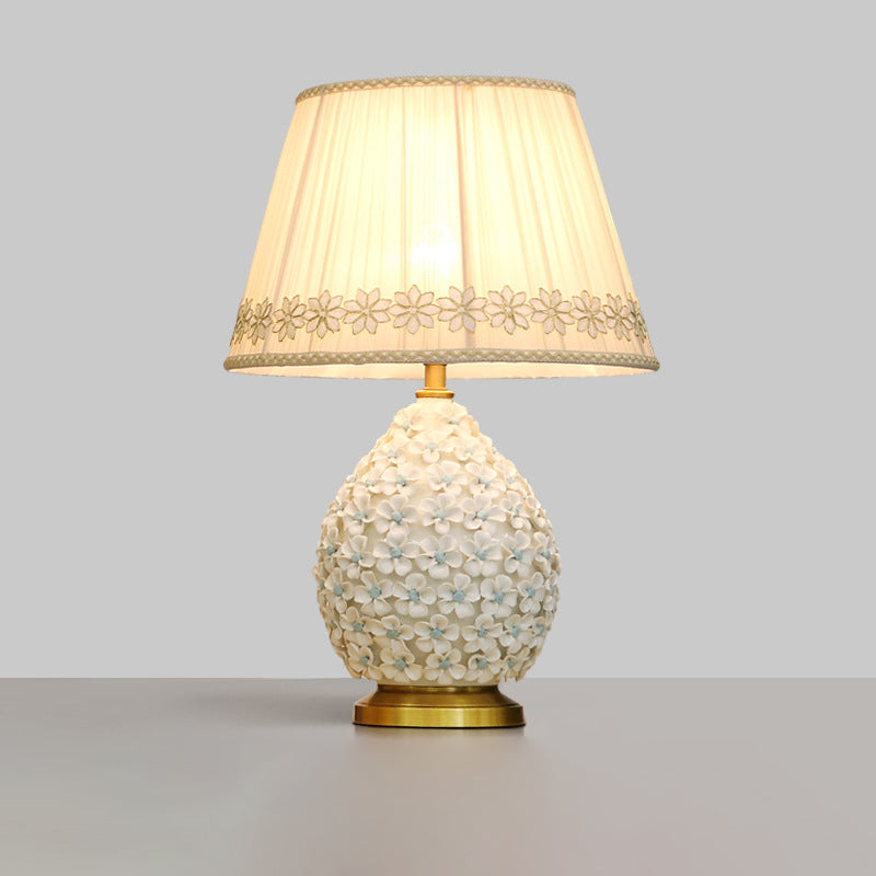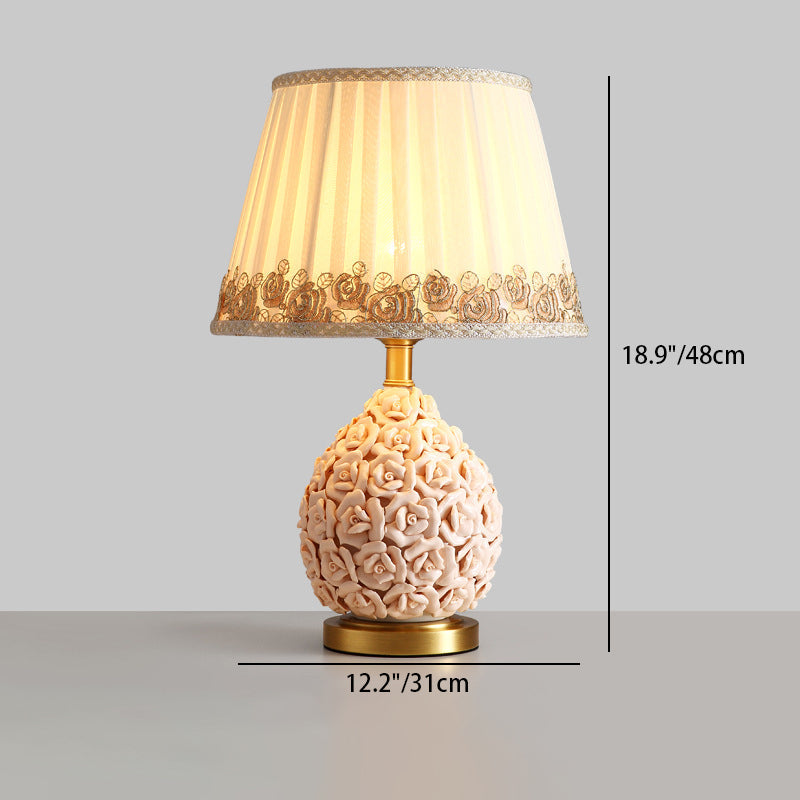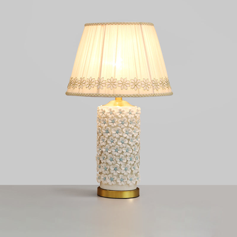 Contemporary Creative Rose Vase Base Cylinder Copper Ceramic Fabric 1-Light Table Lamp For Bedroom