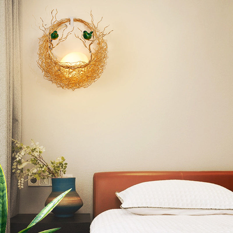 Contemporary Creative Round Bird's Nest Aluminum Hardware Glass 1-Light Wall Sconce Lamp For Living Room