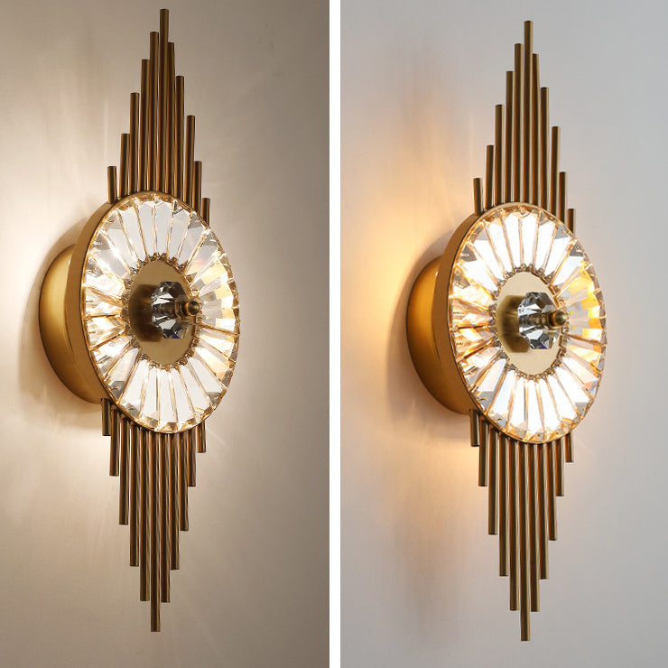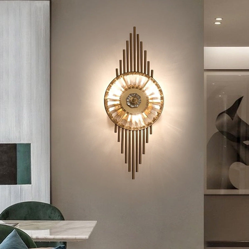 Contemporary Creative Round Branch Oval Crystal Iron 3-Light Wall Sconce Lamp For Living Room