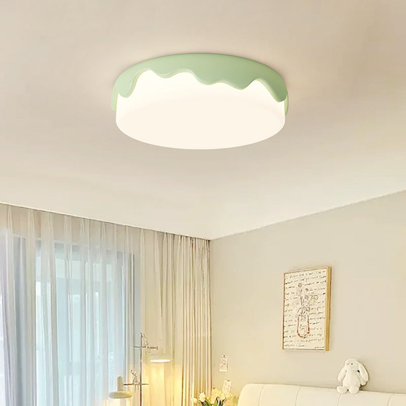 Contemporary Creative Round Cake Resin Acrylic LED Flush Mount Ceiling Light For Bedroom