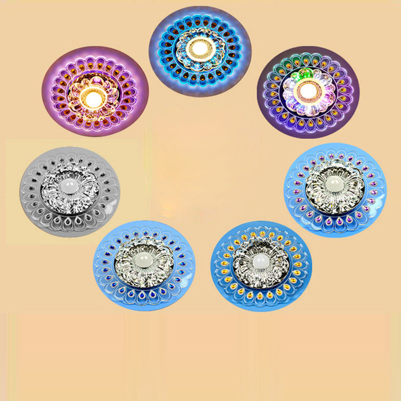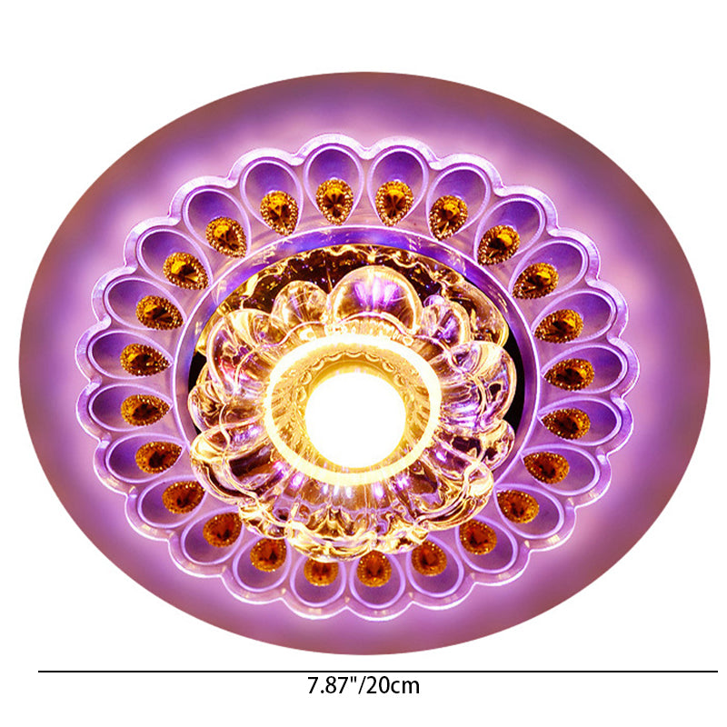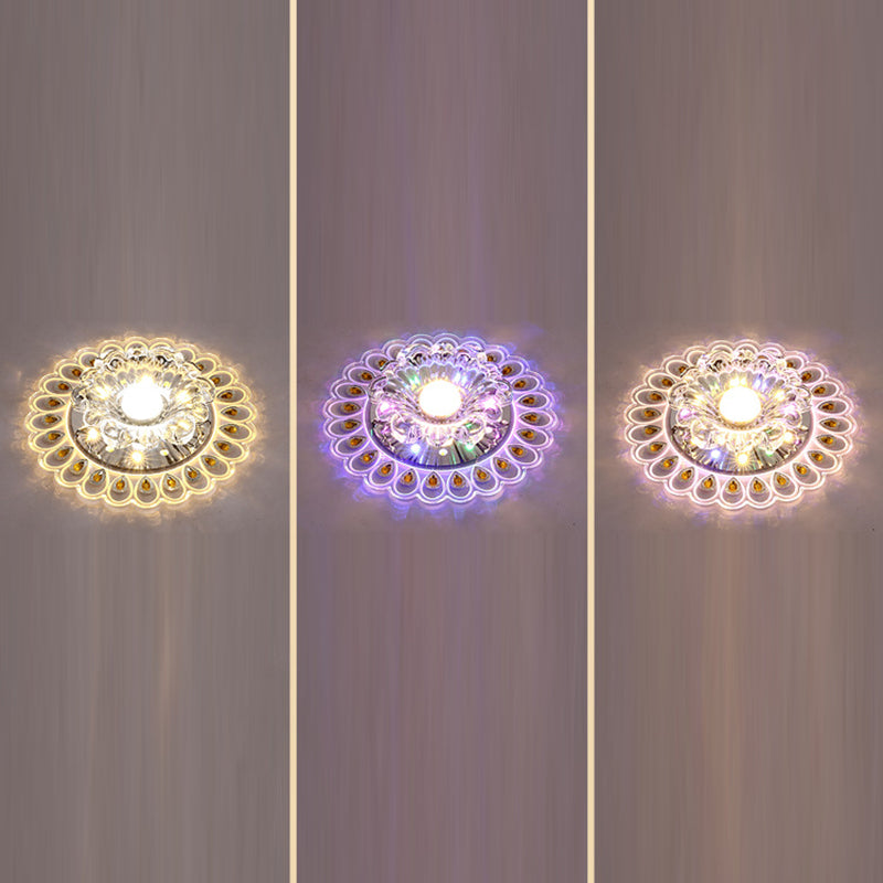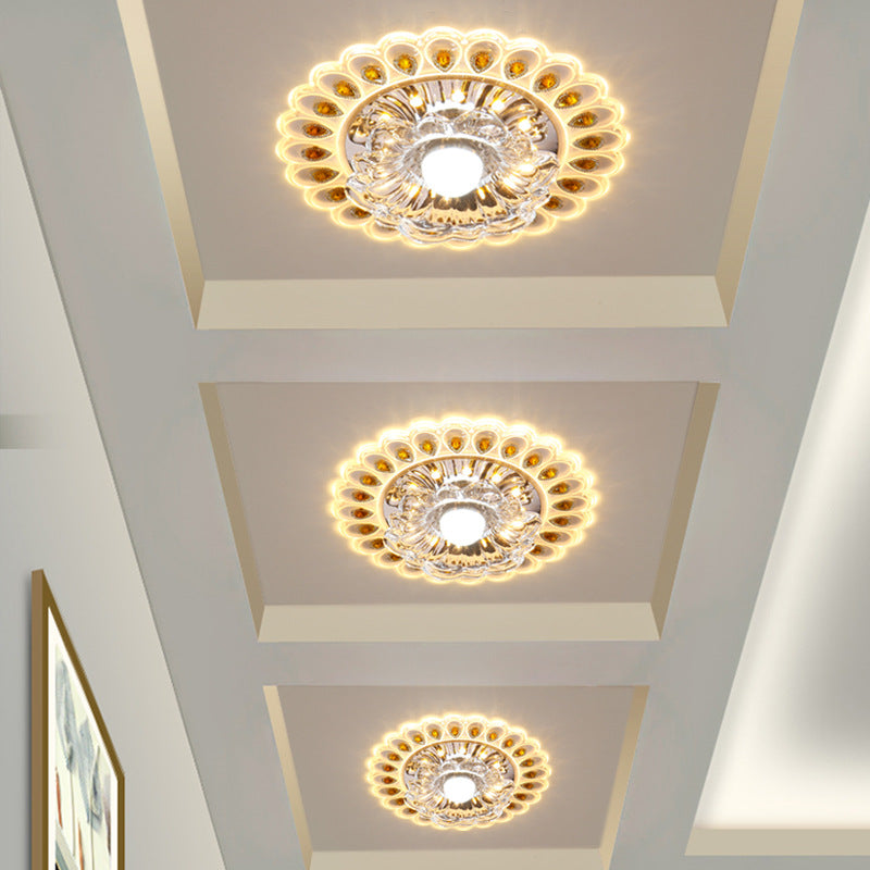 Contemporary Creative Round Crystal Glass Acrylic Stainless Steel LED Flush Mount Ceiling Light For Hallway