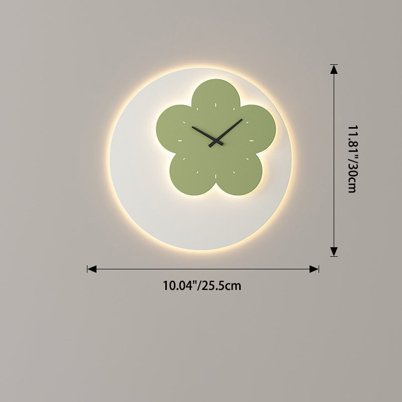 Contemporary Creative Round Decorative Clock Heart Iron Acrylic LED Wall Sconce Lamp For Bedroom