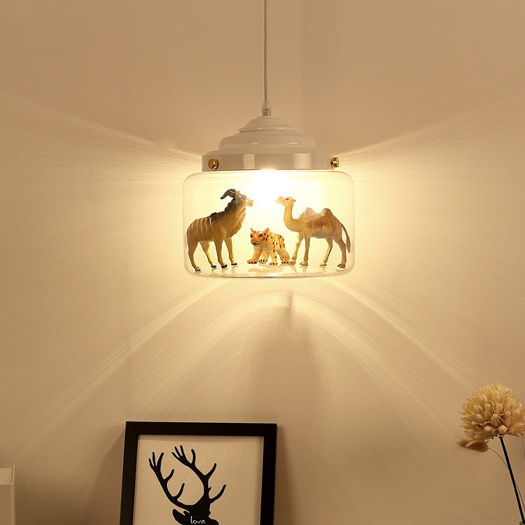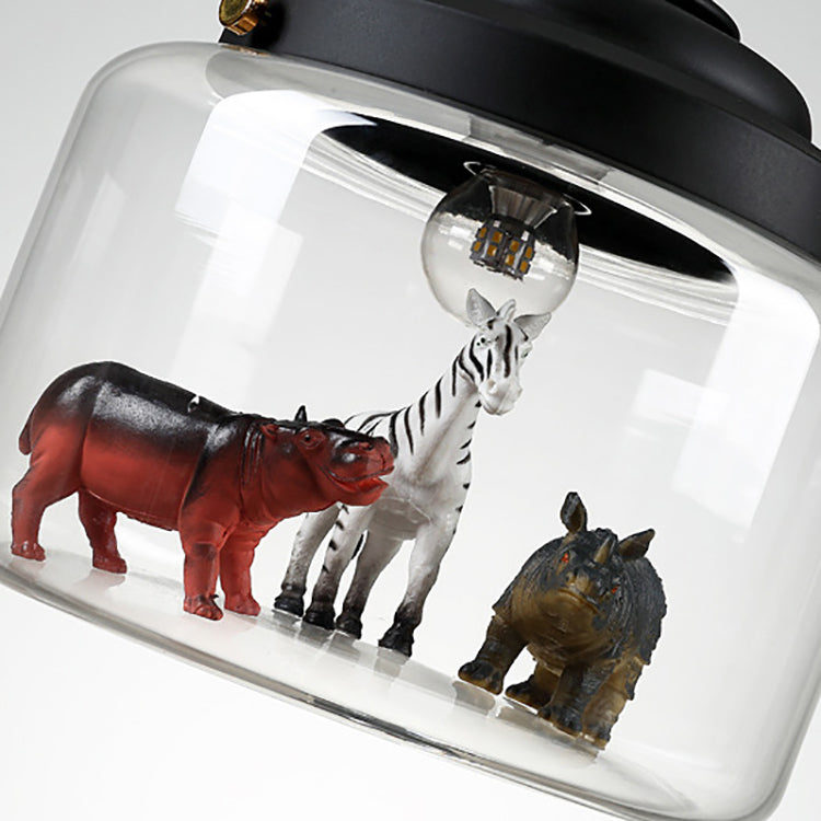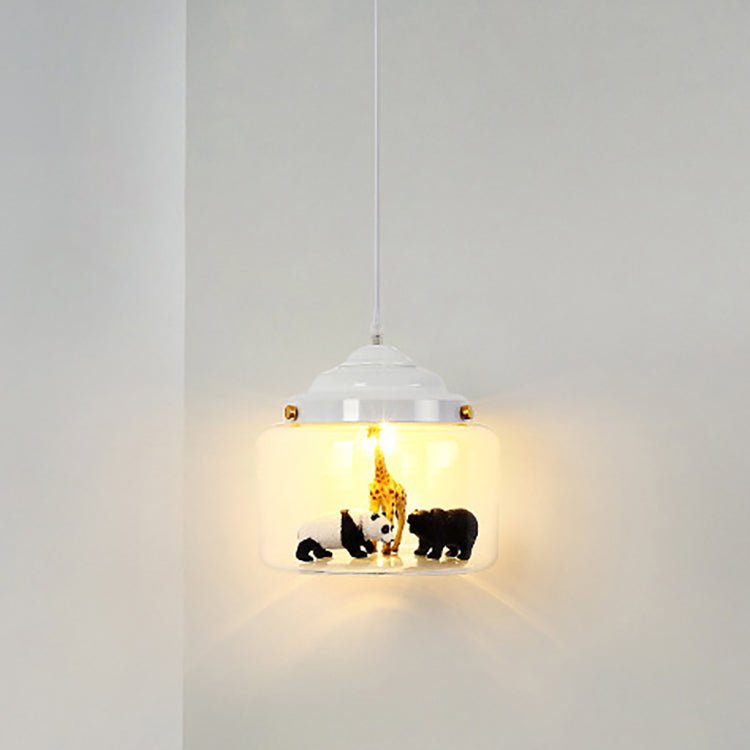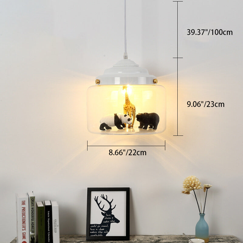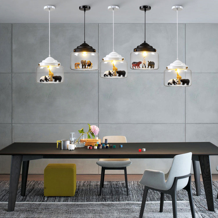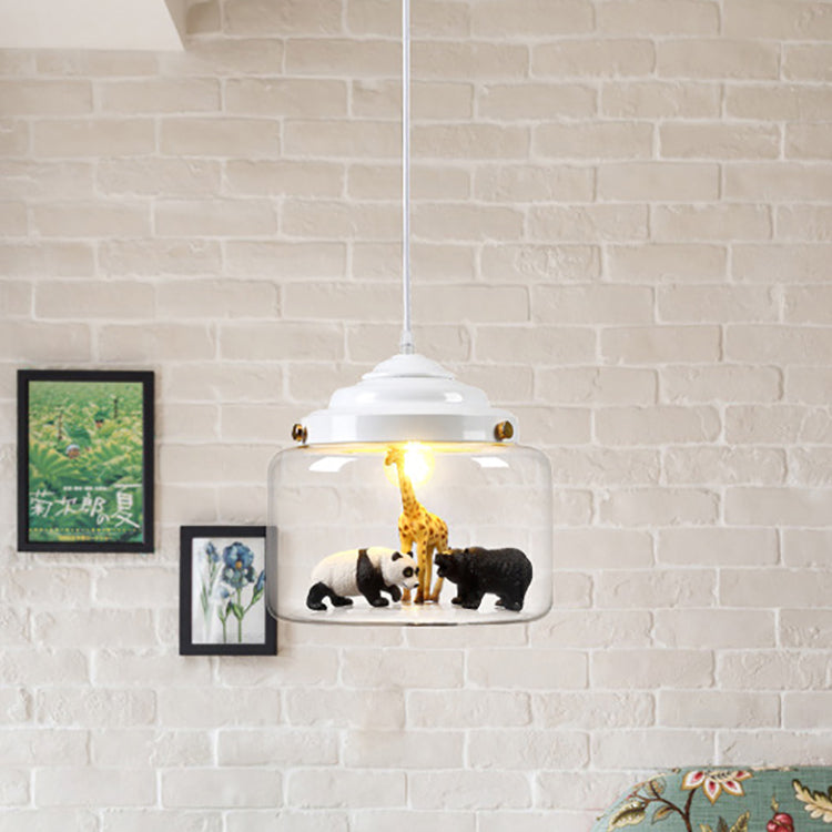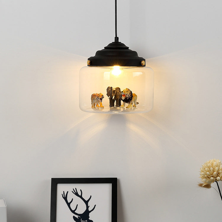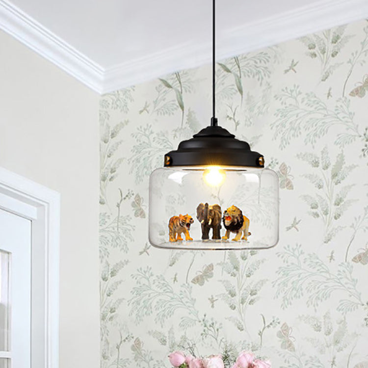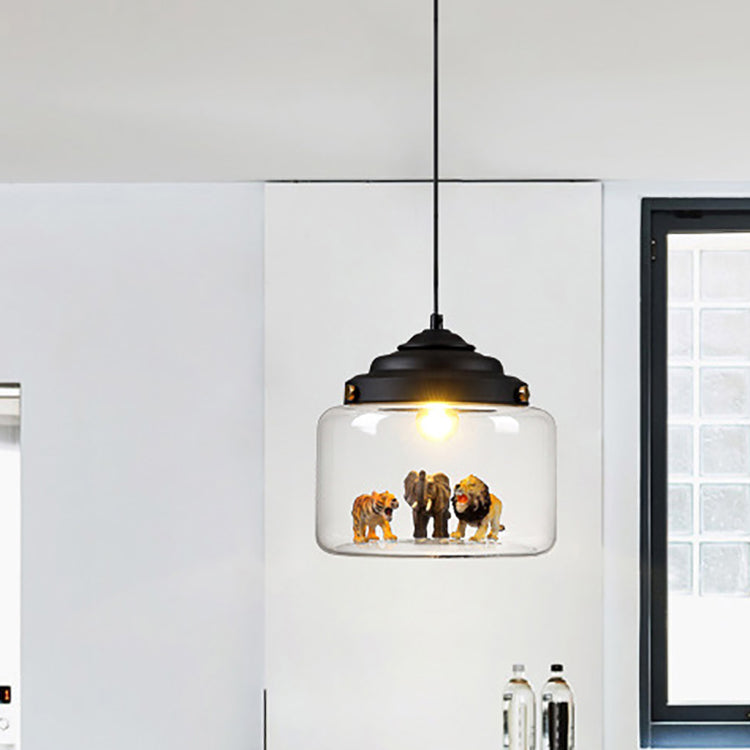 Contemporary Creative Round Jar Iron Glass 1-Light Pendant Light For Living Room