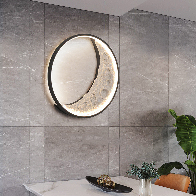 Contemporary Creative Round Moon Resin Iron Lampshade LED Wall Sconce Lamp For Living Room