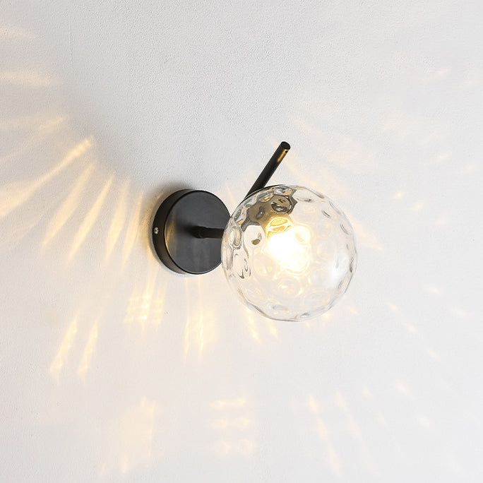 Contemporary Creative Round Orb Water Patterned Glass Iron 1-Light Wall Sconce Lamp For Living Room