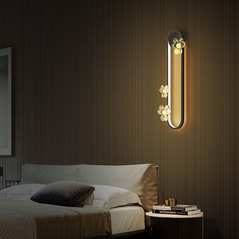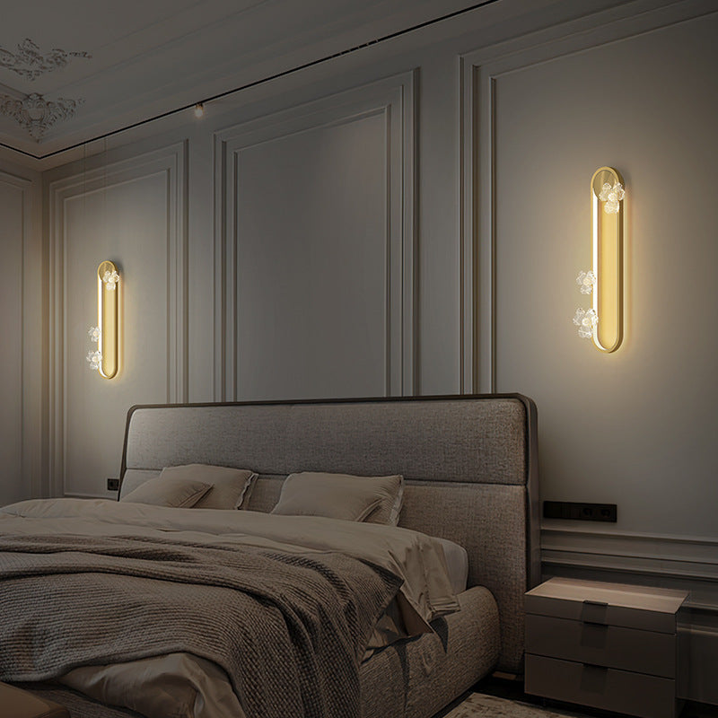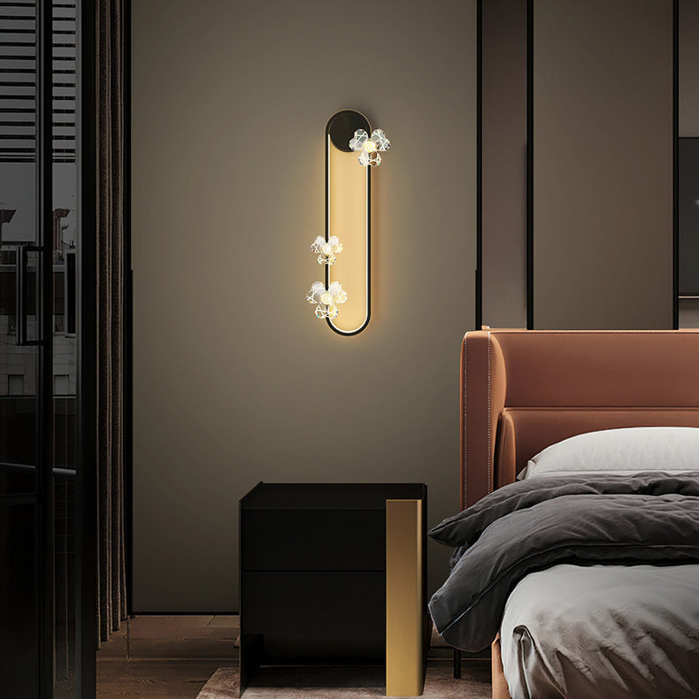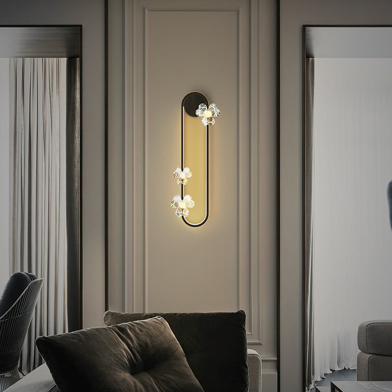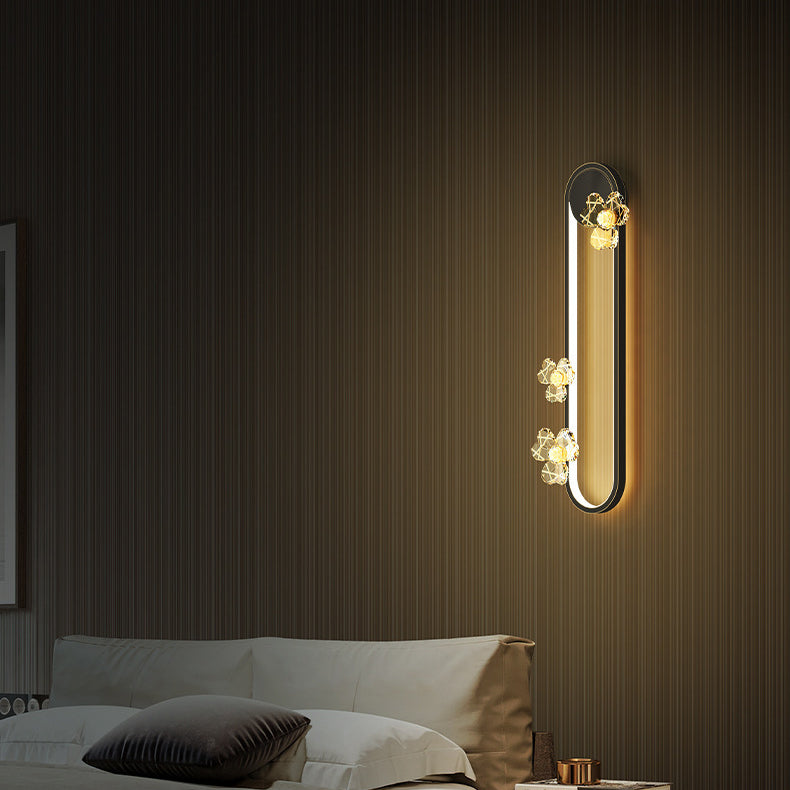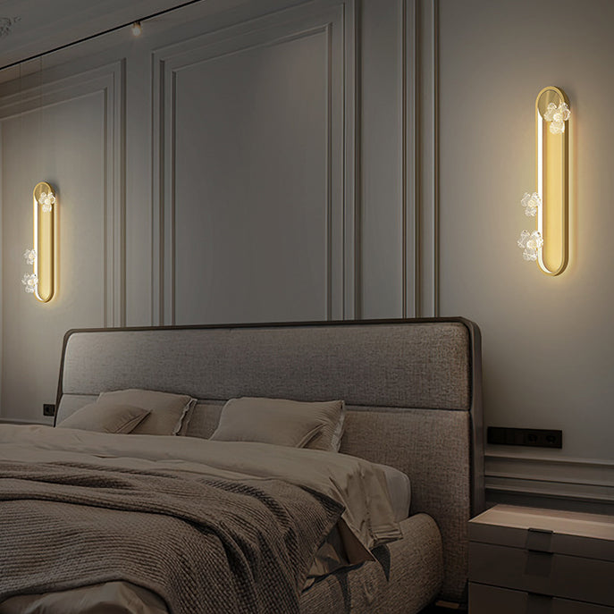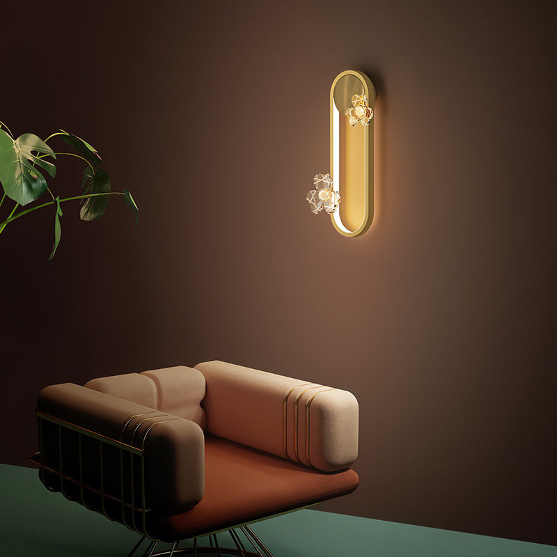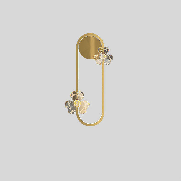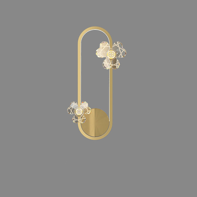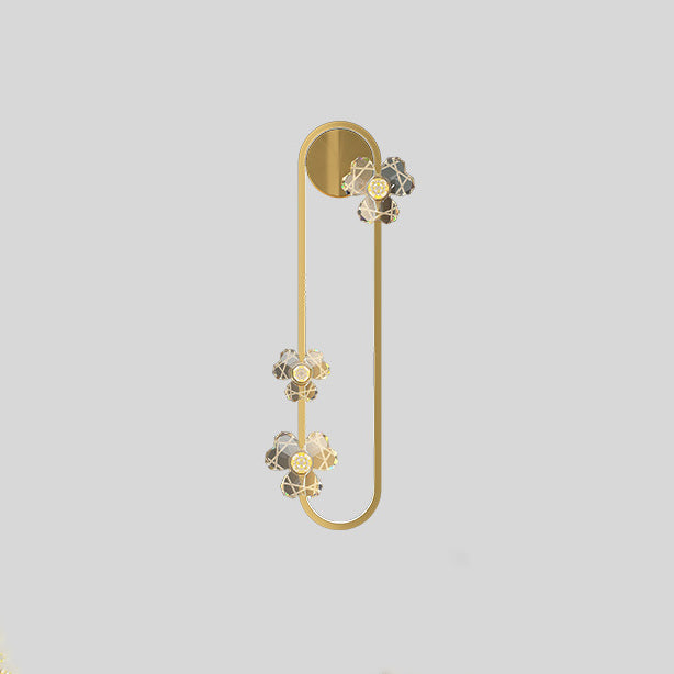 Contemporary Creative Round Oval Floral Acrylic Brass LED Wall Sconce Lamp For Living Room