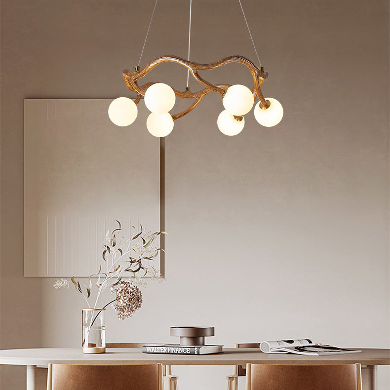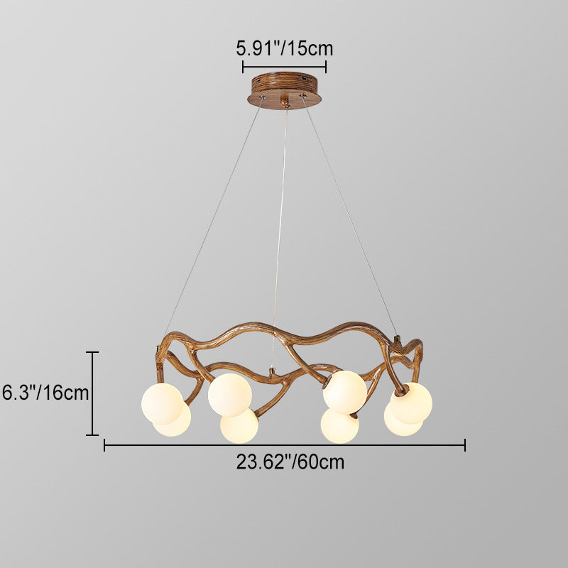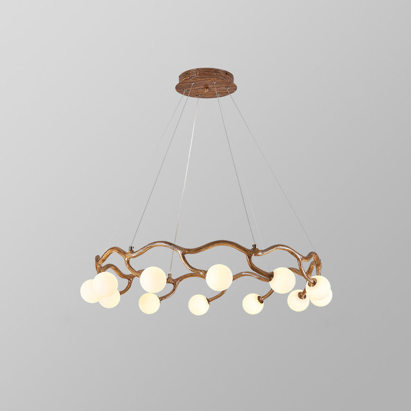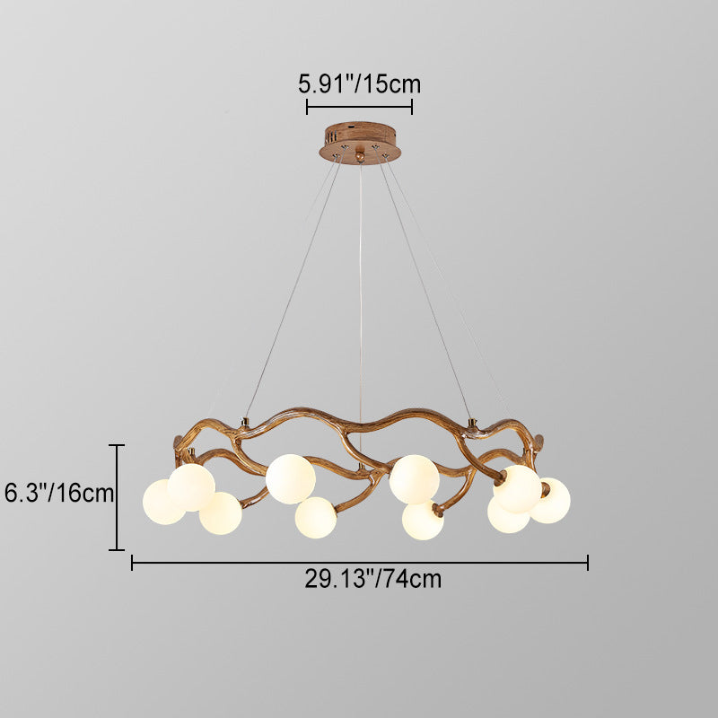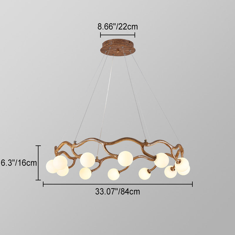Contemporary Creative Round Tree Branch Hardware Glass 6/8/10/12 Light Chandelier For Living Room