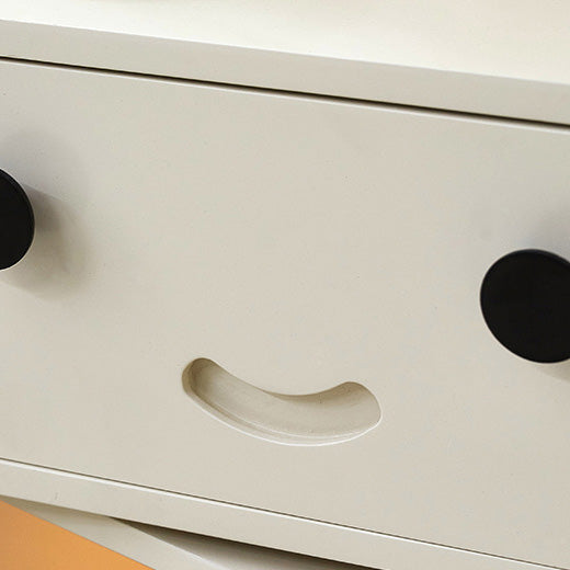 This white boxy robot-shaped side table features a charming modern design with a 360° rotatable head, movable wheels, and magnetic flip-door storage. Made of solid wood and metal, it offers dual compartments and a playful silhouette—perfect for stylish organization in bedrooms and living rooms.