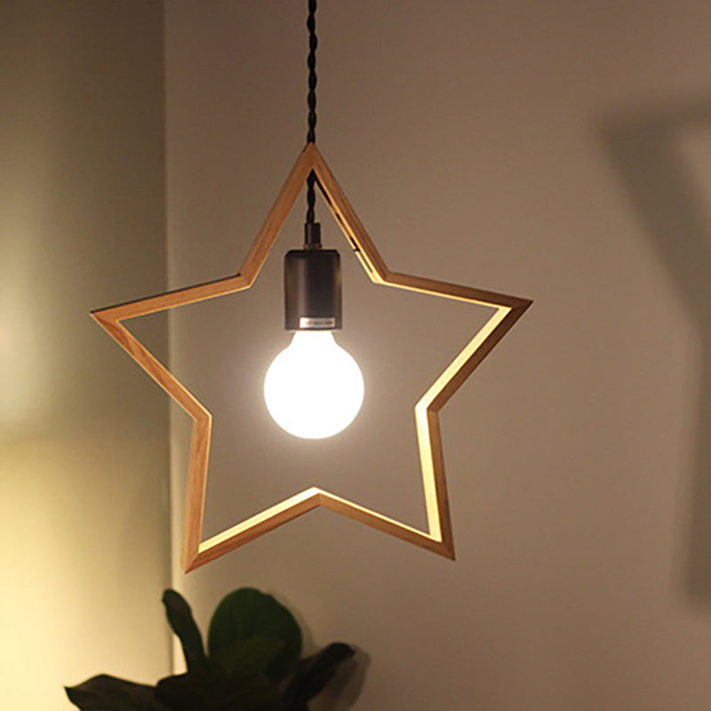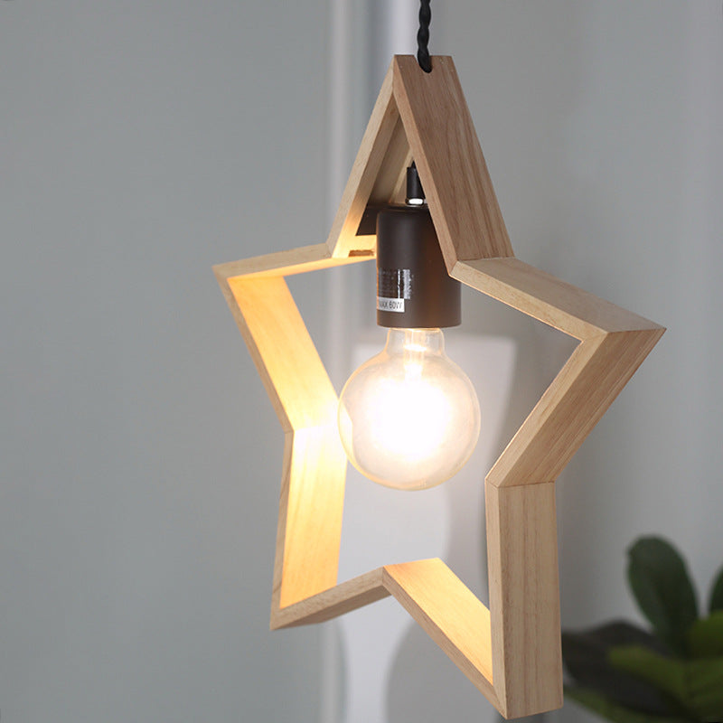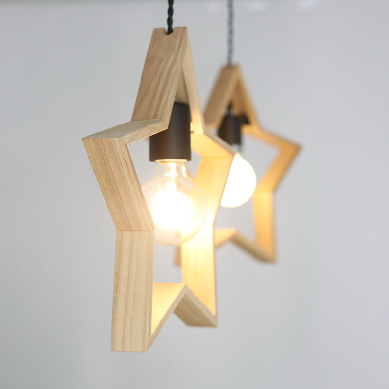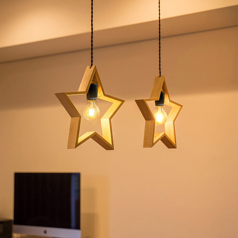 Contemporary Creative Solid Wood Pentagram Star 1-Light Pendant Light For Living Room