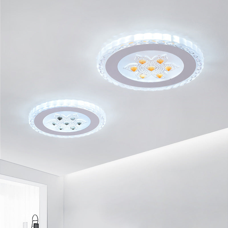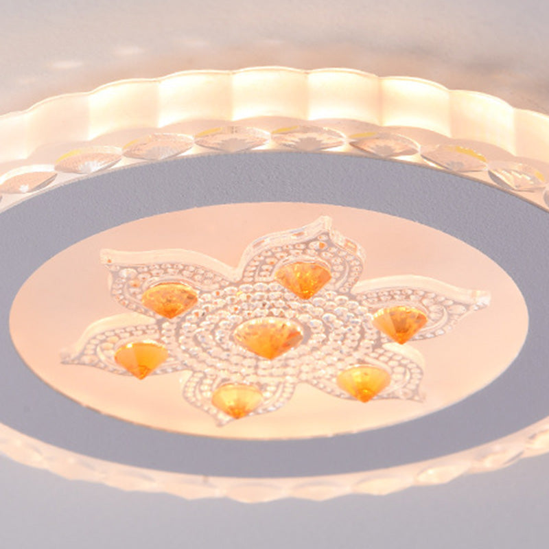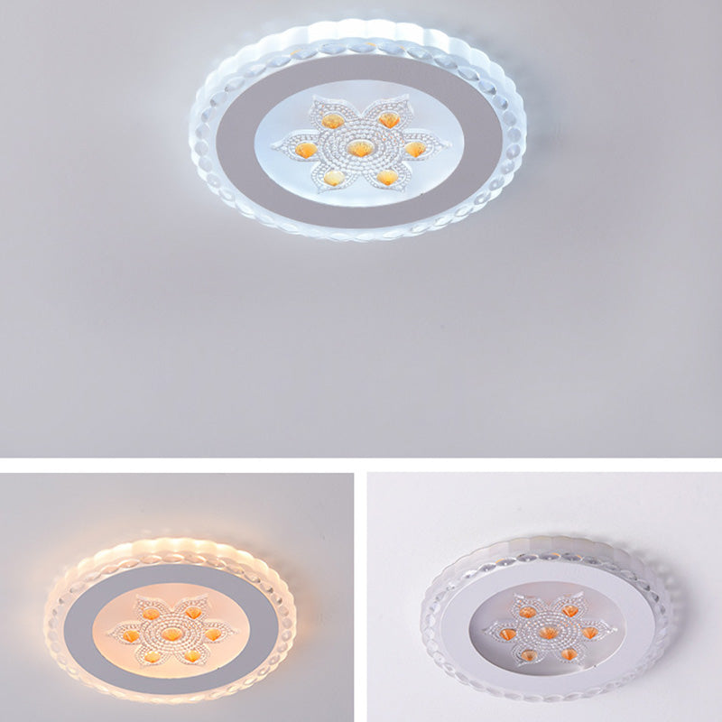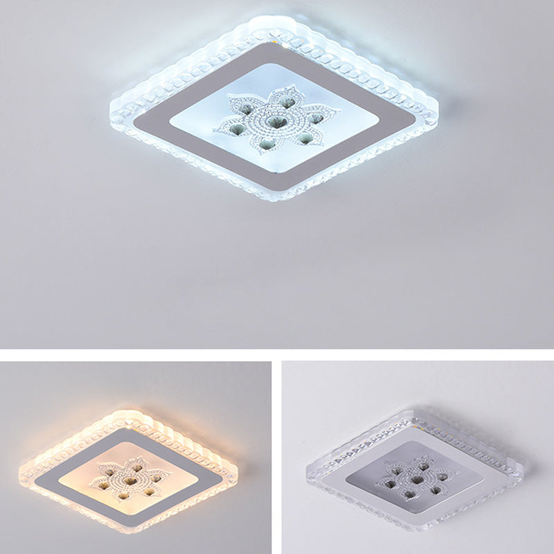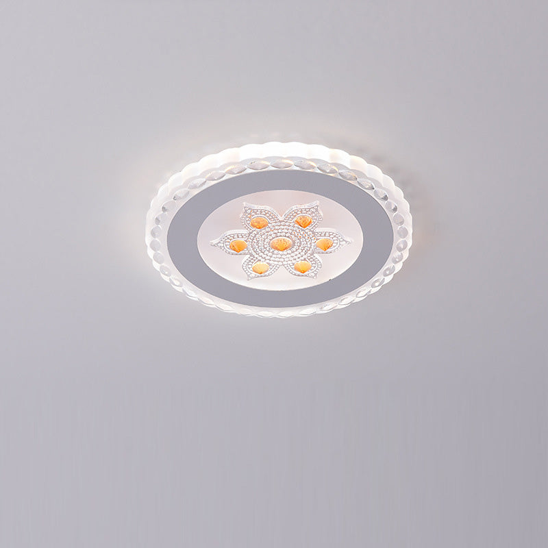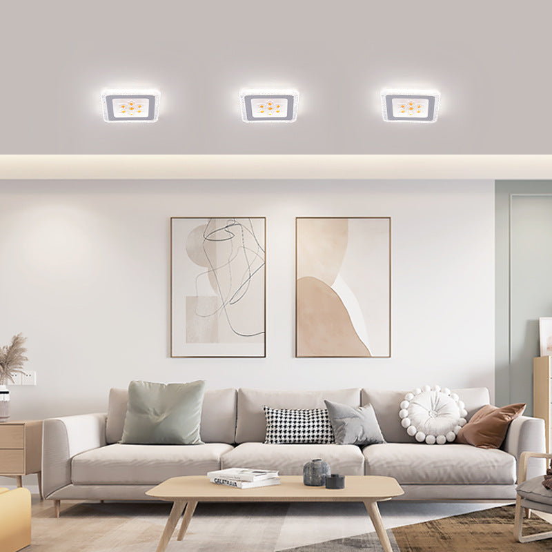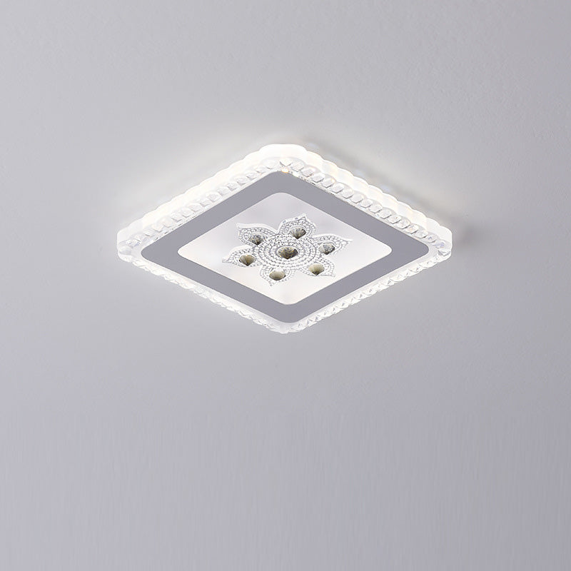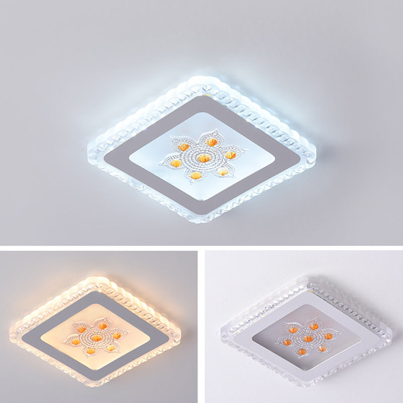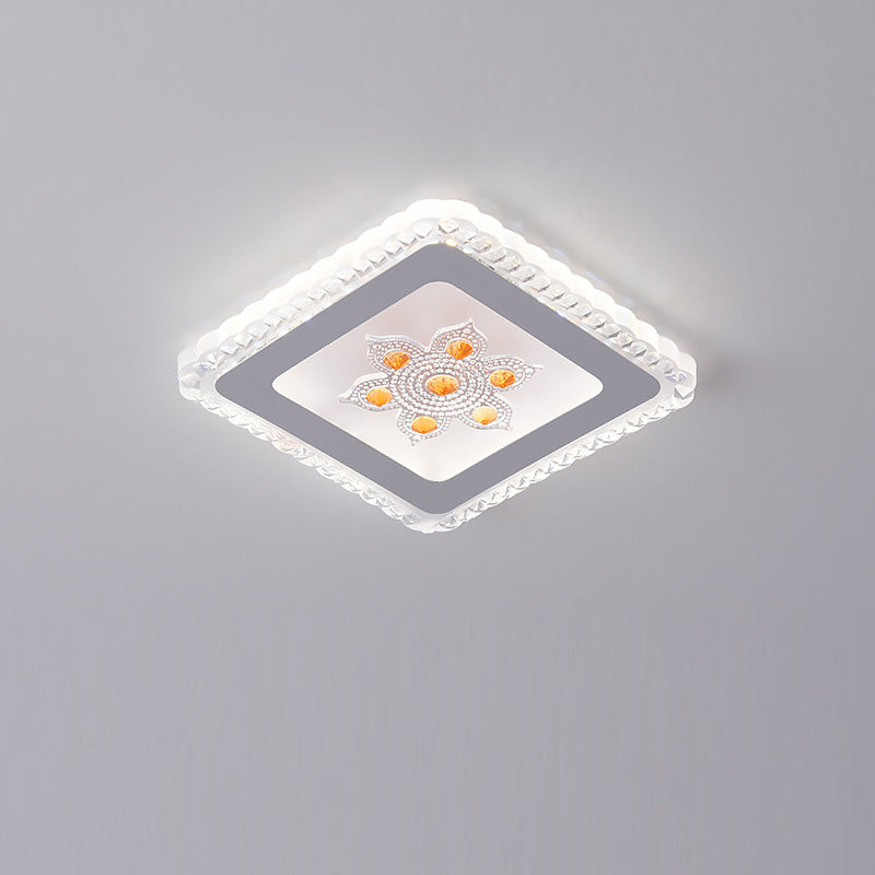 Contemporary Creative Square Round Flower Iron Resin LED Flush Mount Ceiling Light For Bedroom