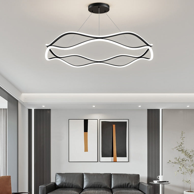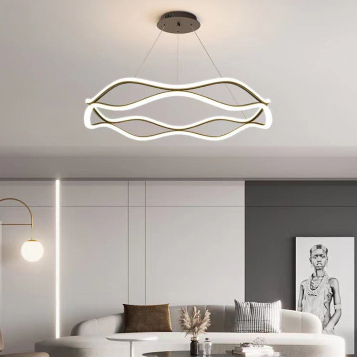 Contemporary Creative Twisted Ring Aluminum Acrylic Crystal LED Chandelier For Bedroom