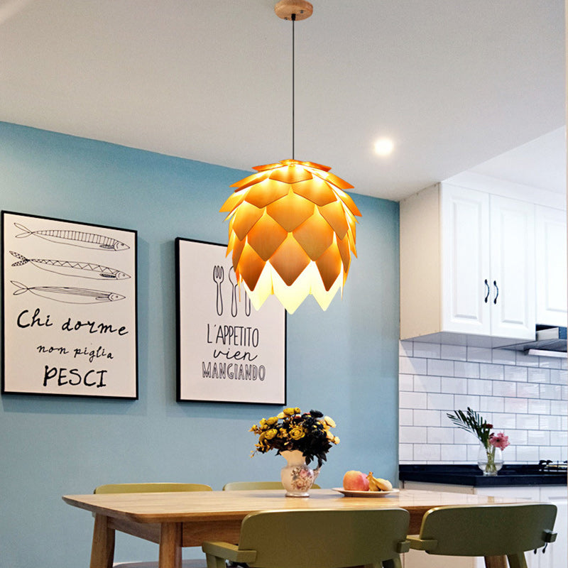 Contemporary Creative Wood Strobile 1-Light Pendant Light For Dining Room