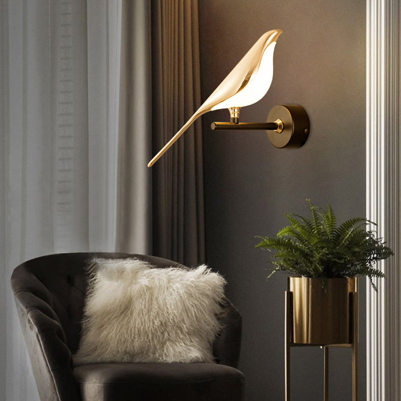 Contemporary Creative Zinc Alloy Acrylic Bird Adjustable LED Wall Sconce Lamp For Bedside