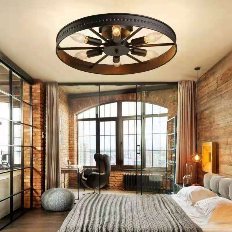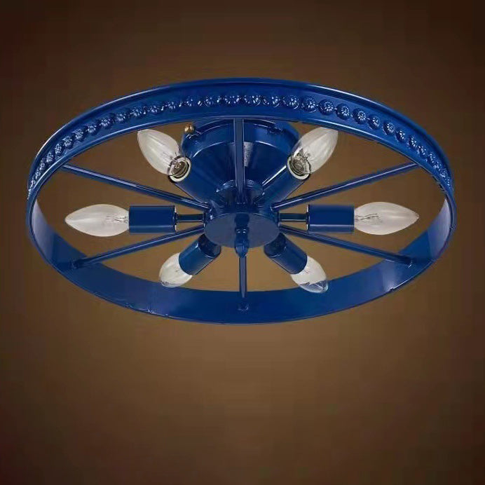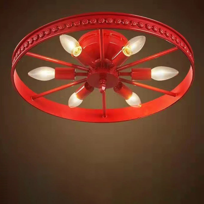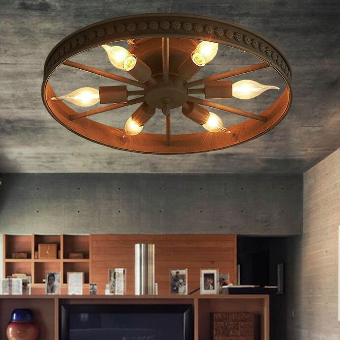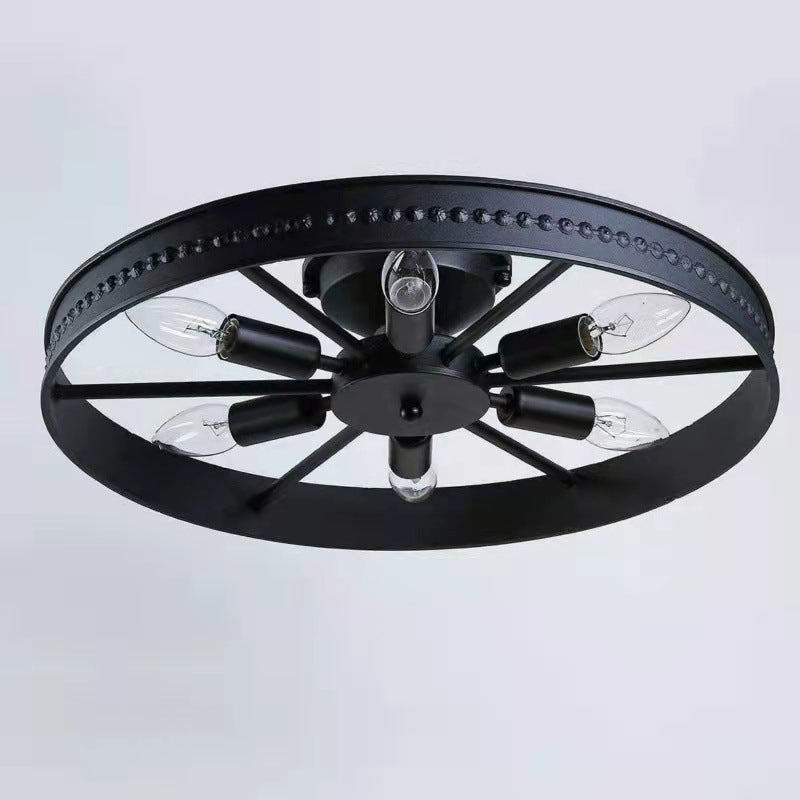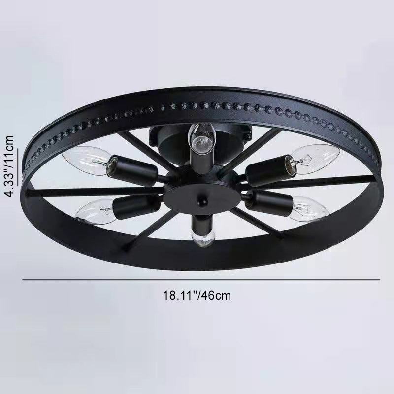 Contemporary Industrial Antique Iron Wheel Shade 6-Light Flush Mount Ceiling Light For Dining Room