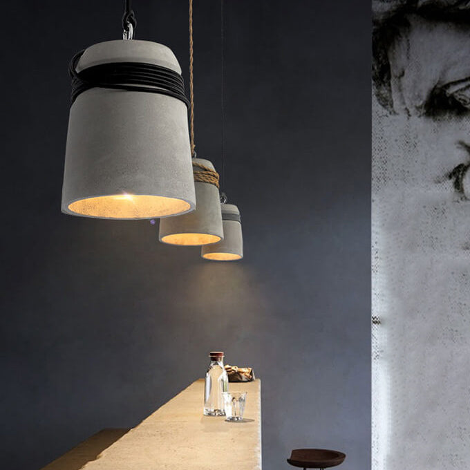 Contemporary Industrial Cylinder Cement 1-Light Pendant Light For Living Room