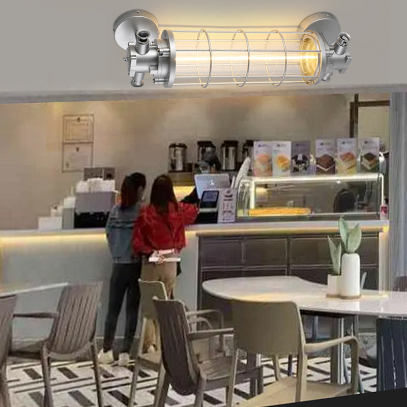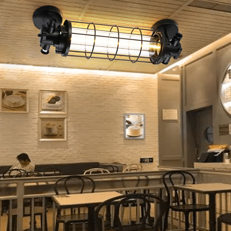 Contemporary Industrial Cylinder Hardware Glass 1-Light Semi-Flush Mount Ceiling Light For Living Room