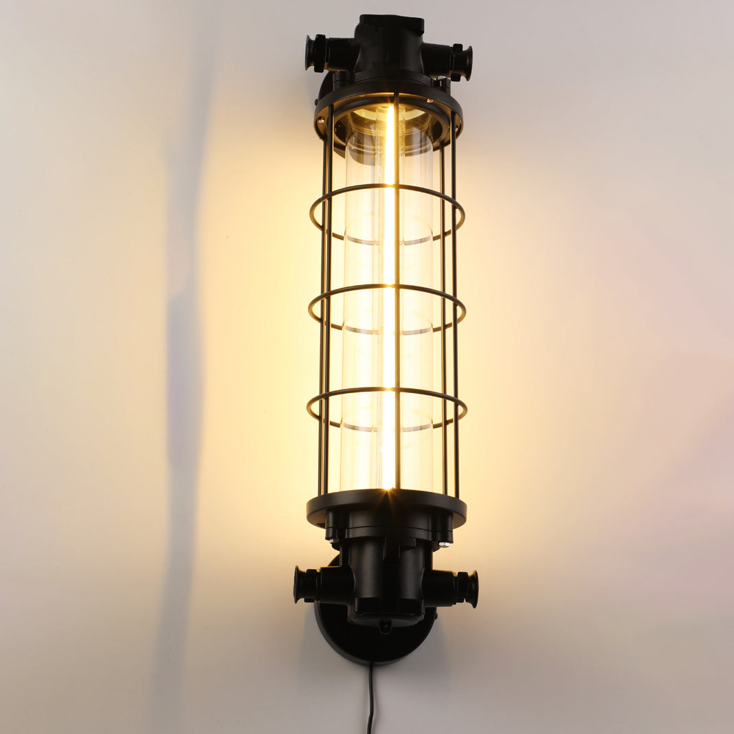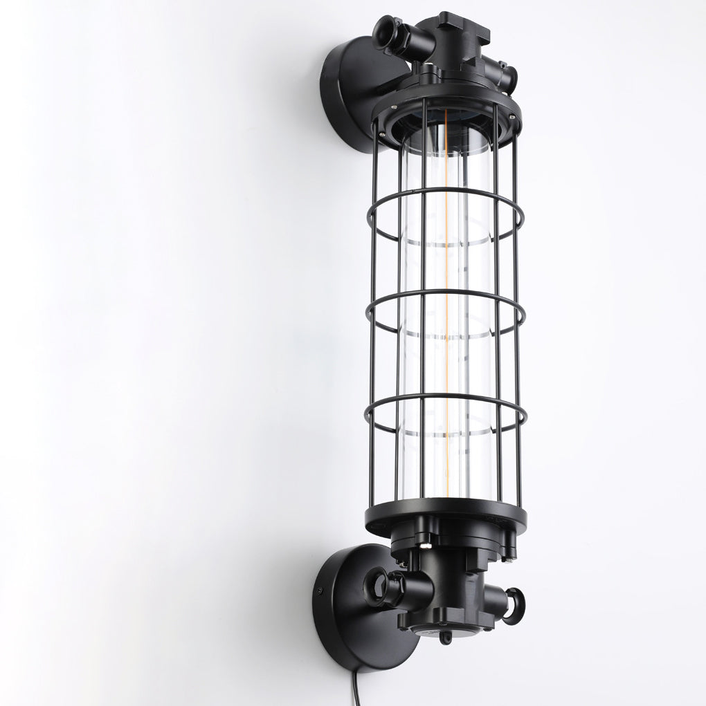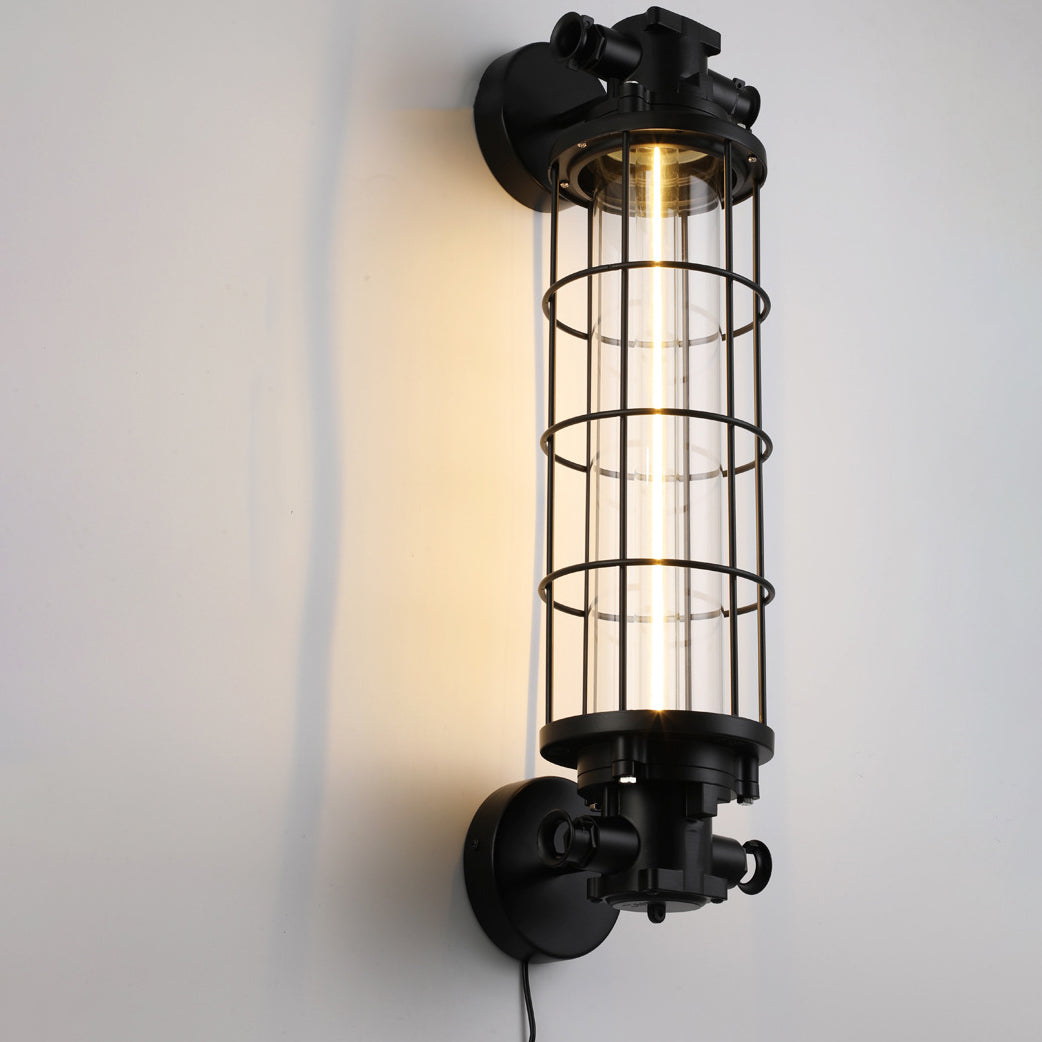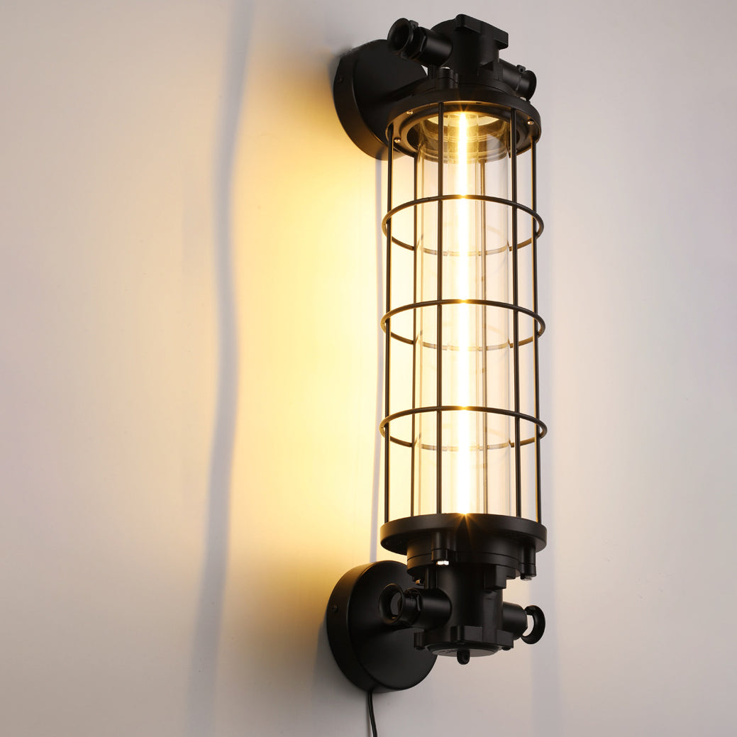 Contemporary Industrial Cylinder Hardware Glass 1-Light Wall Sconce Lamp For Living Room