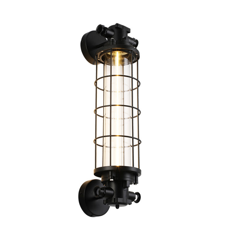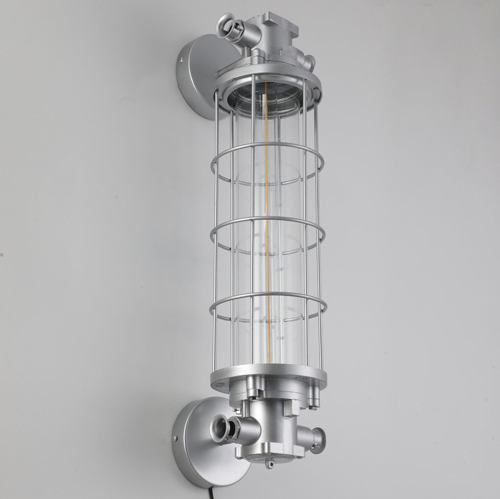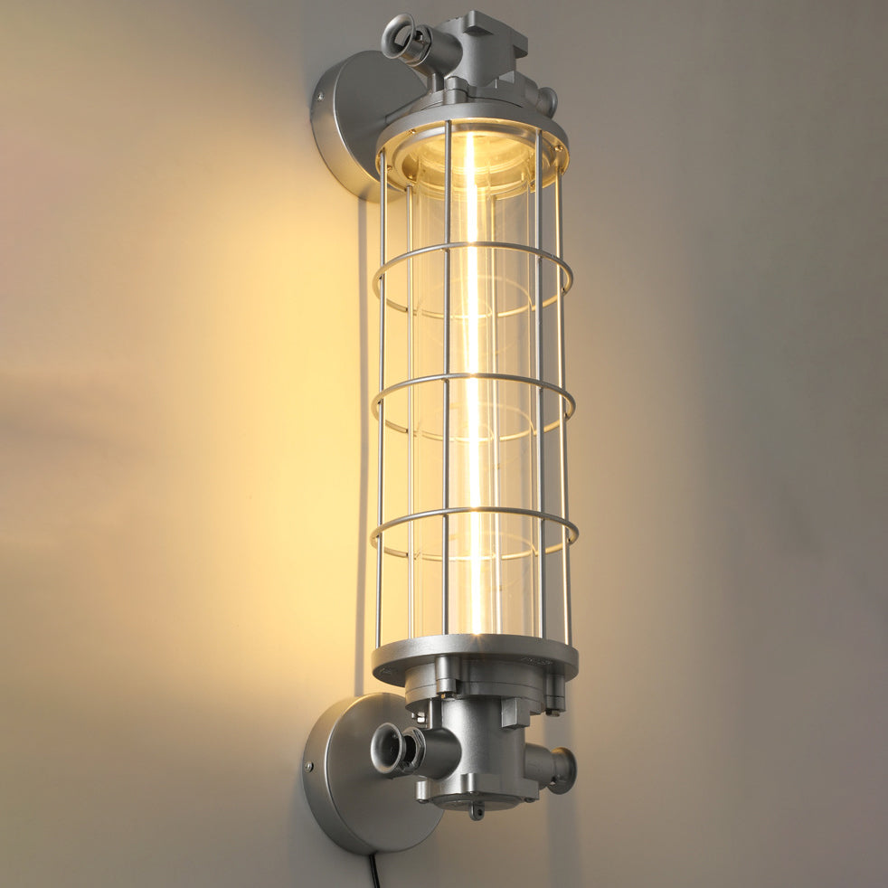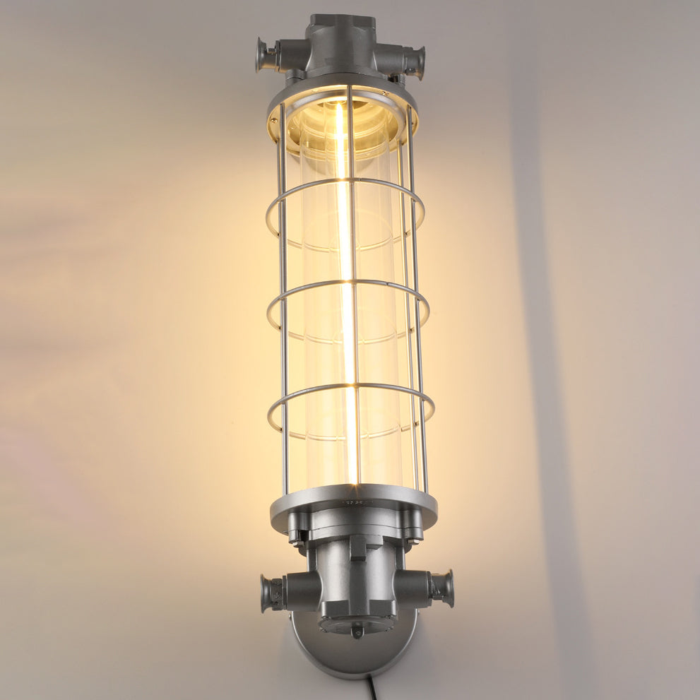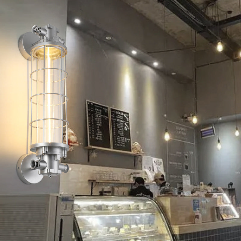 Contemporary Industrial Cylinder Hardware Glass 1-Light Wall Sconce Lamp For Living Room