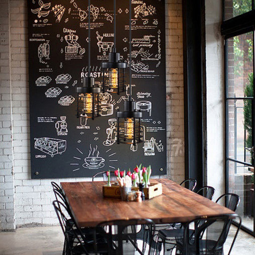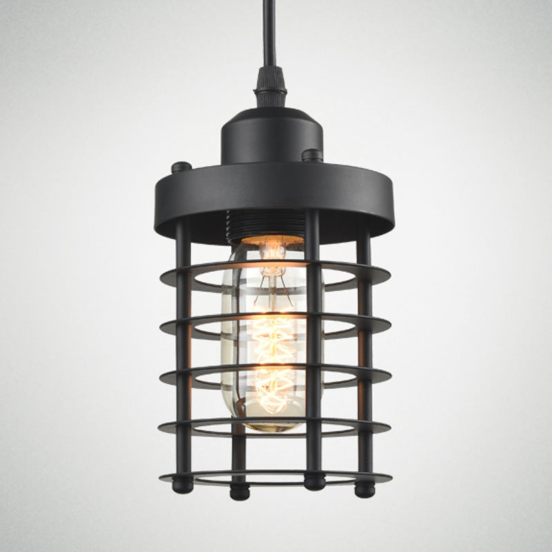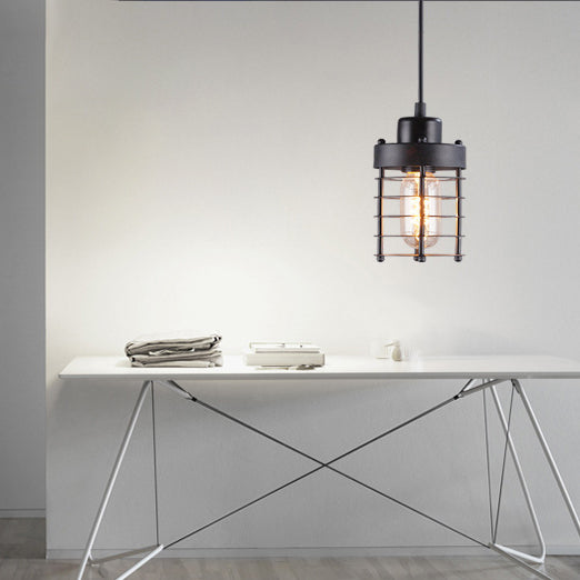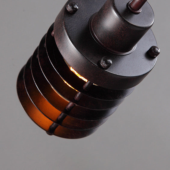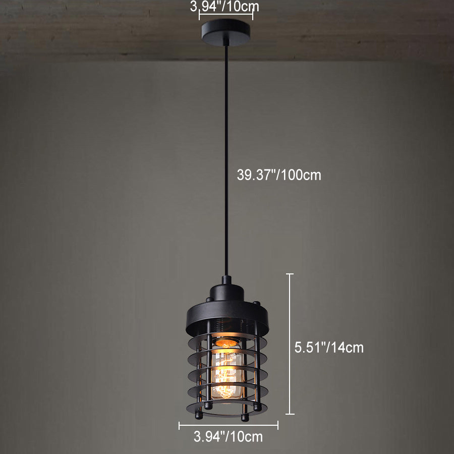 Contemporary Industrial Cylinder Hollow Out Iron 1-Light Pendant Light For Living Room