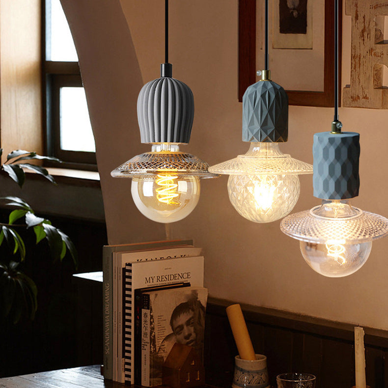 Contemporary Industrial Dome Cylinder Cement 1-Light Pendant Light For Living Room