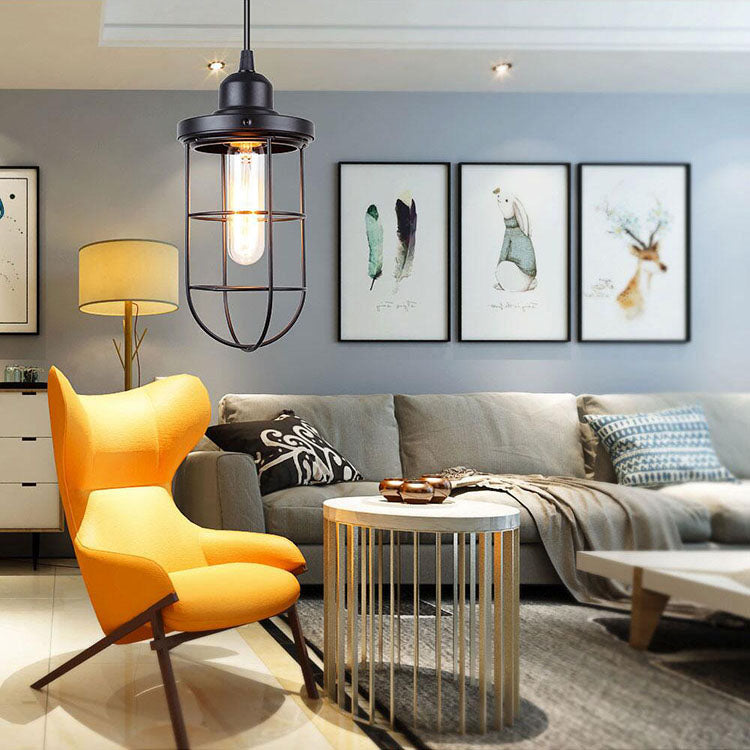 Contemporary Industrial Iron Cage 1-Light Pendant Light For Living Room