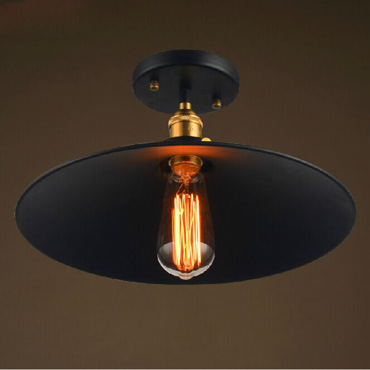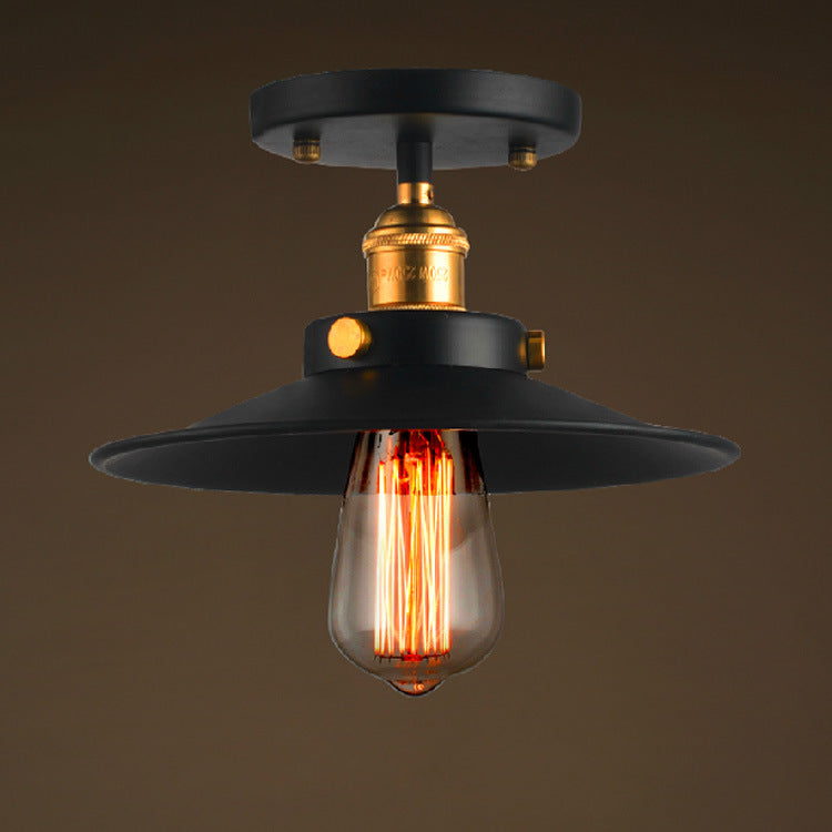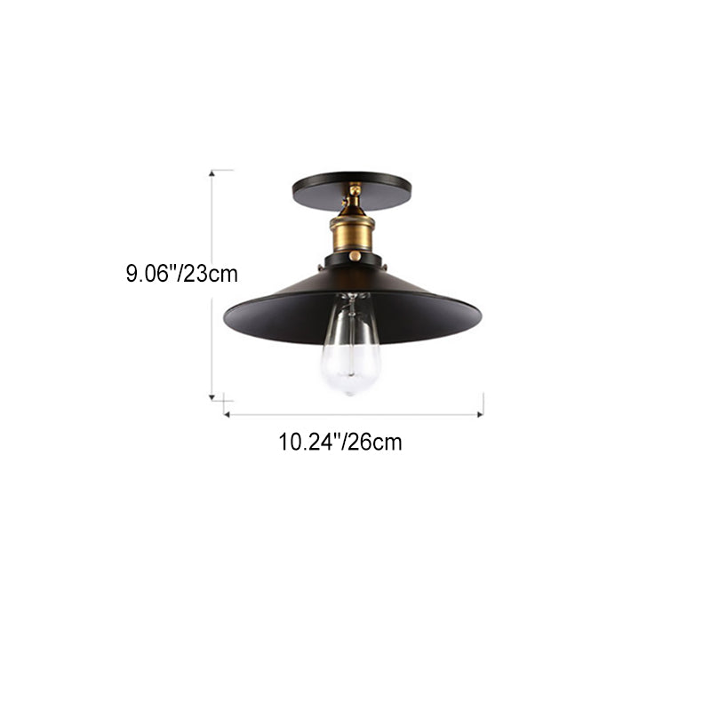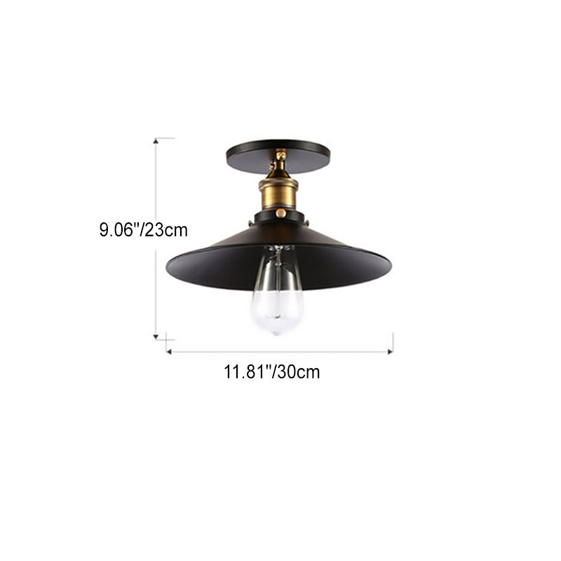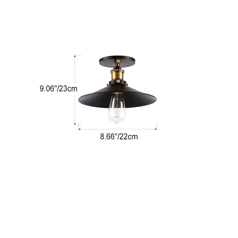 Contemporary Industrial Iron Conical Shade 1-Light Semi-Flush Mount Ceiling Light For Hallway