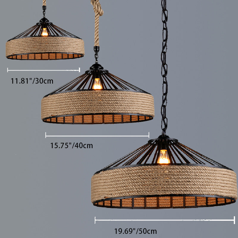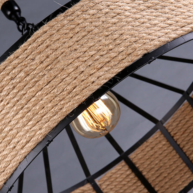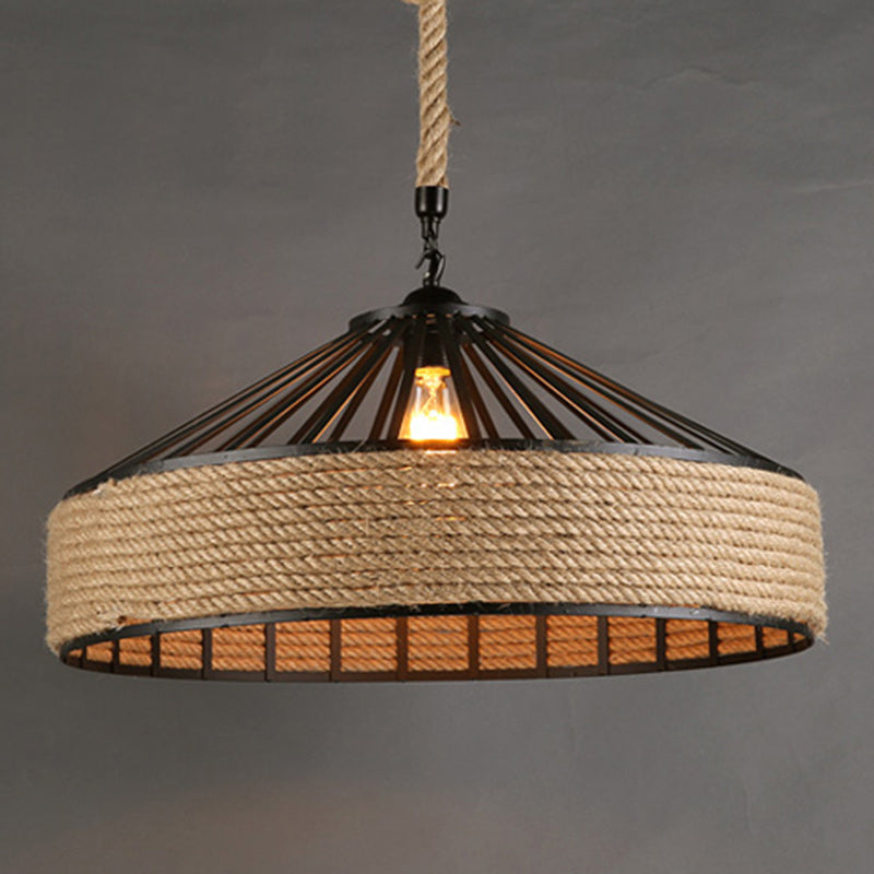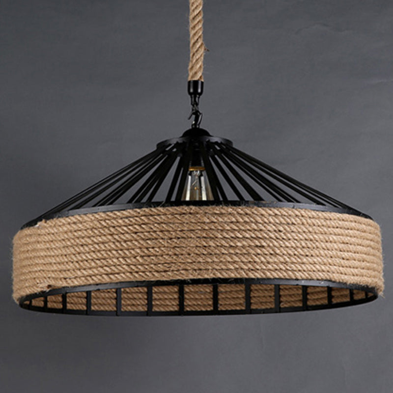 Contemporary Industrial Iron Hemp Rope Round Conic 1-Light Pendant Light For Dining Room