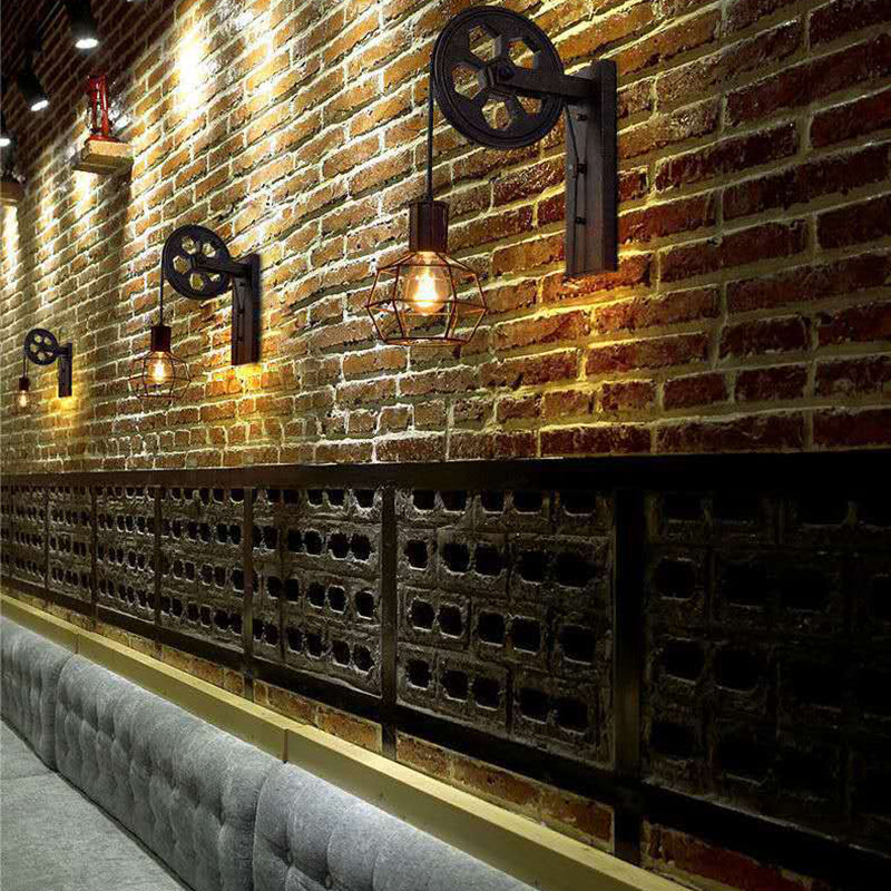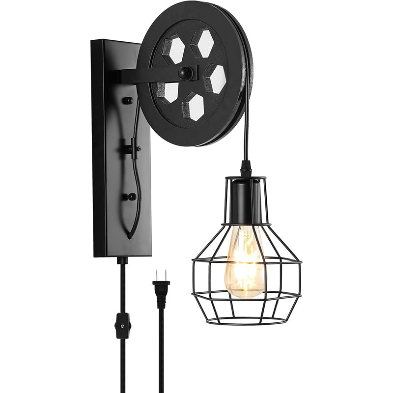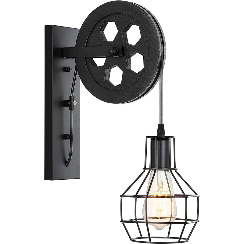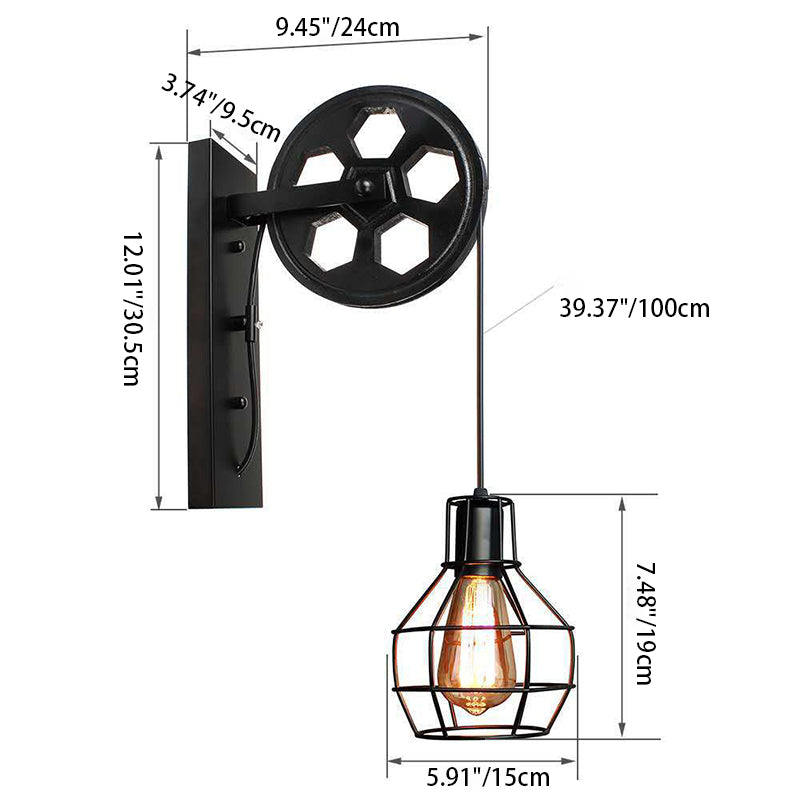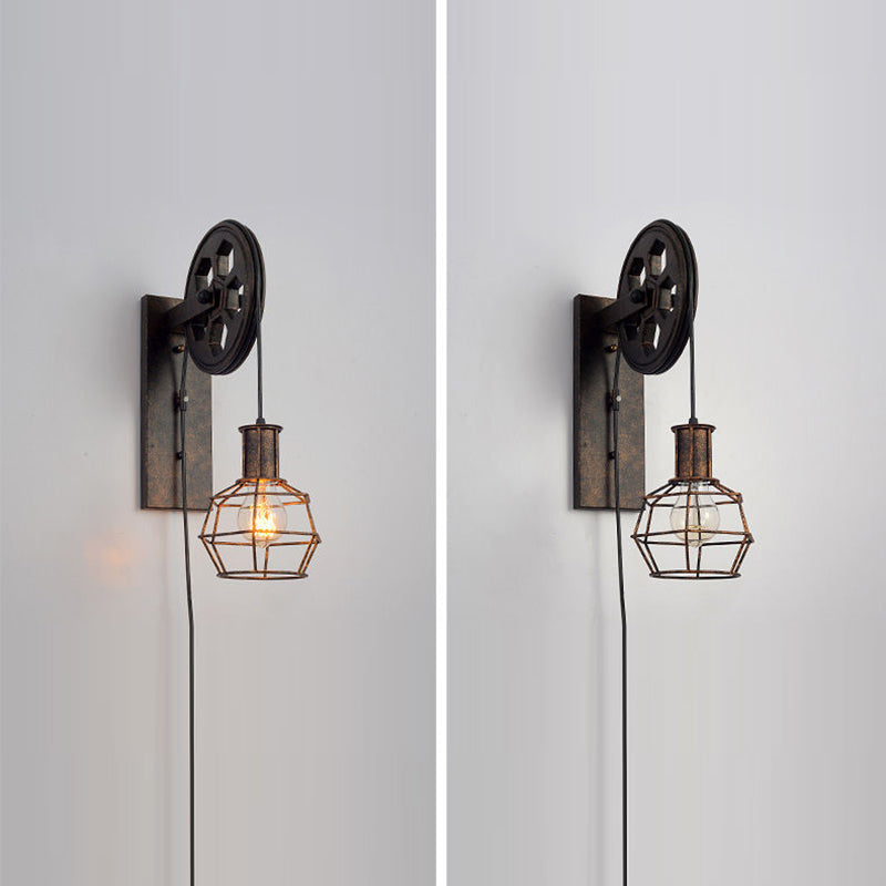 Contemporary Industrial Iron Net Glass 1-Light Pulley Lifting Wall Sconce Lamp For Dining Room
