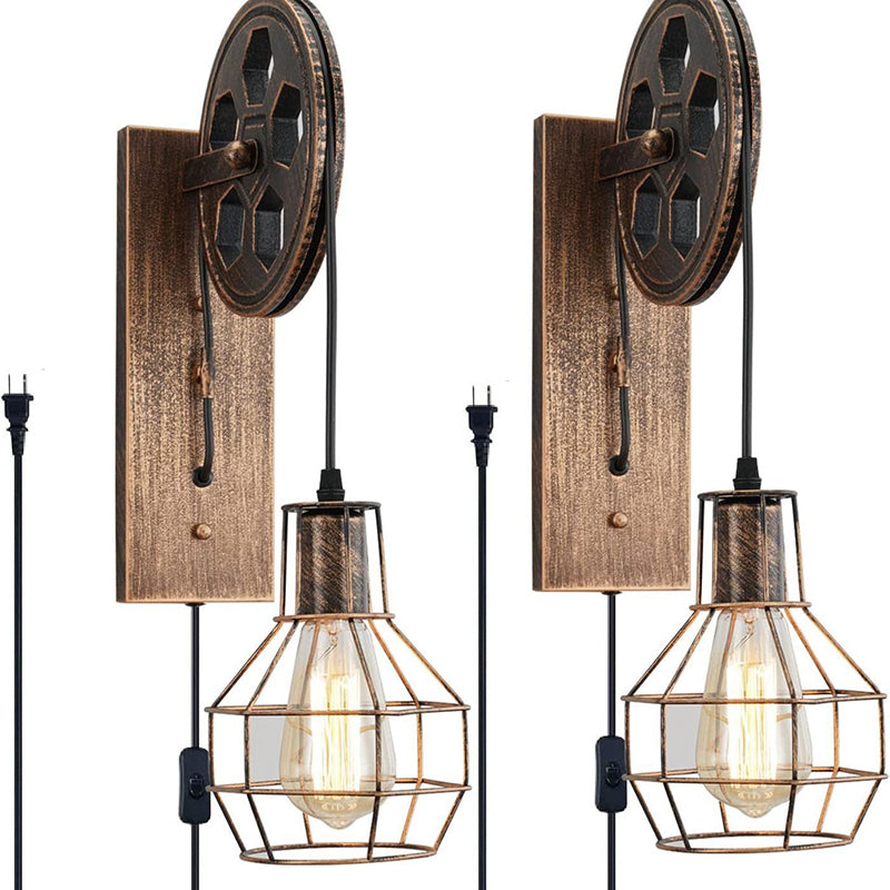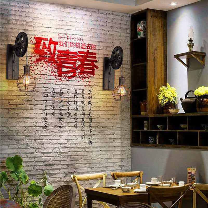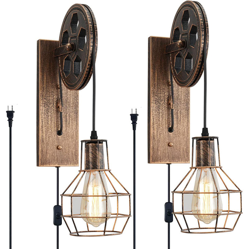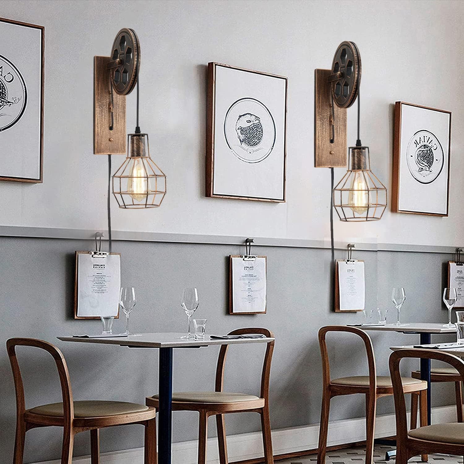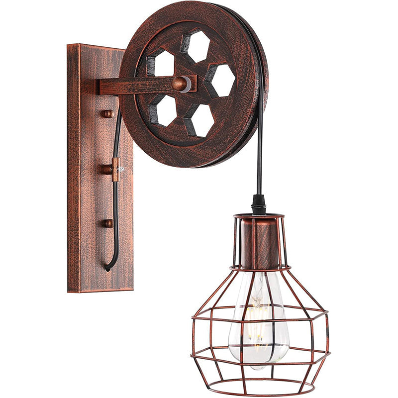 Contemporary Industrial Iron Net Glass 1-Light Pulley Lifting Wall Sconce Lamp For Dining Room