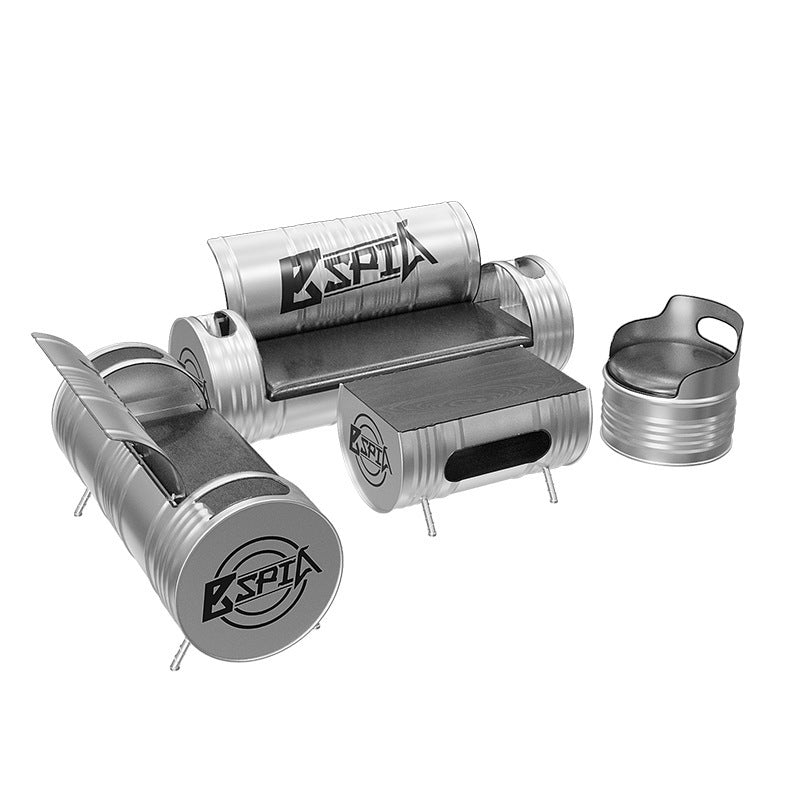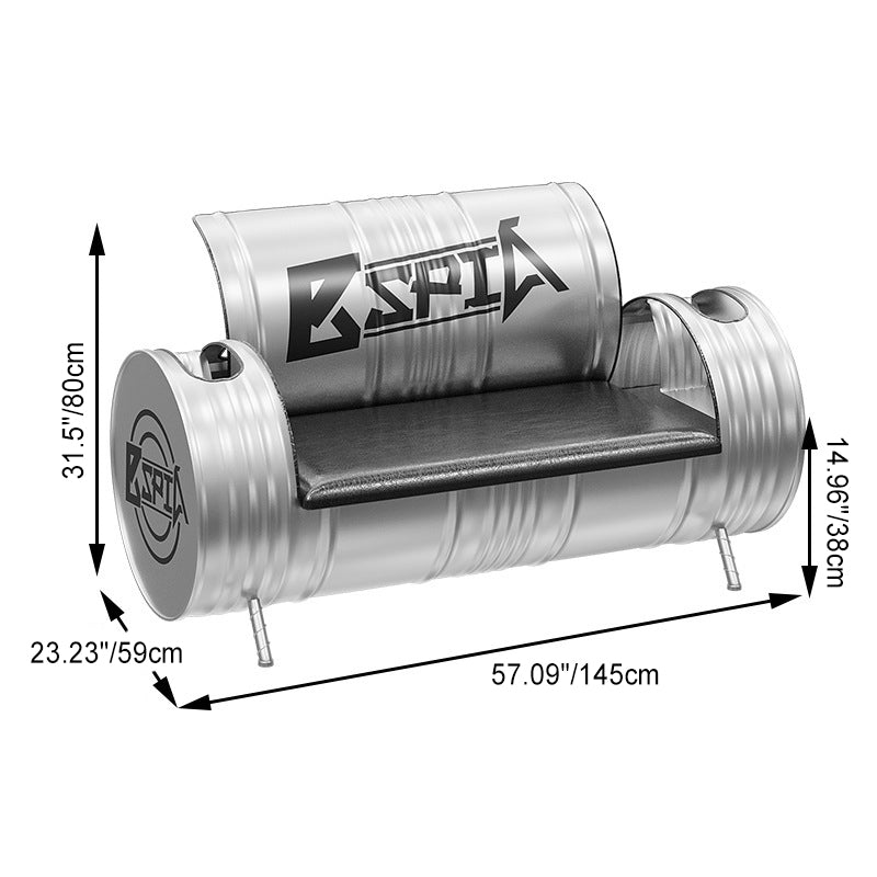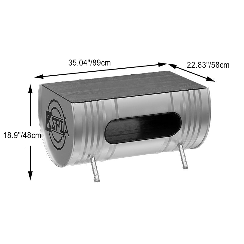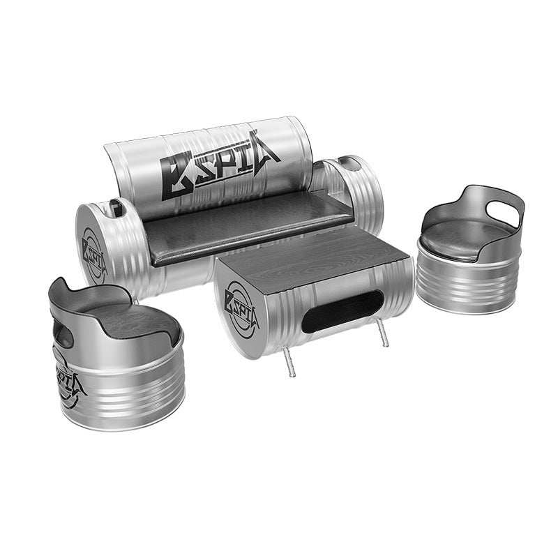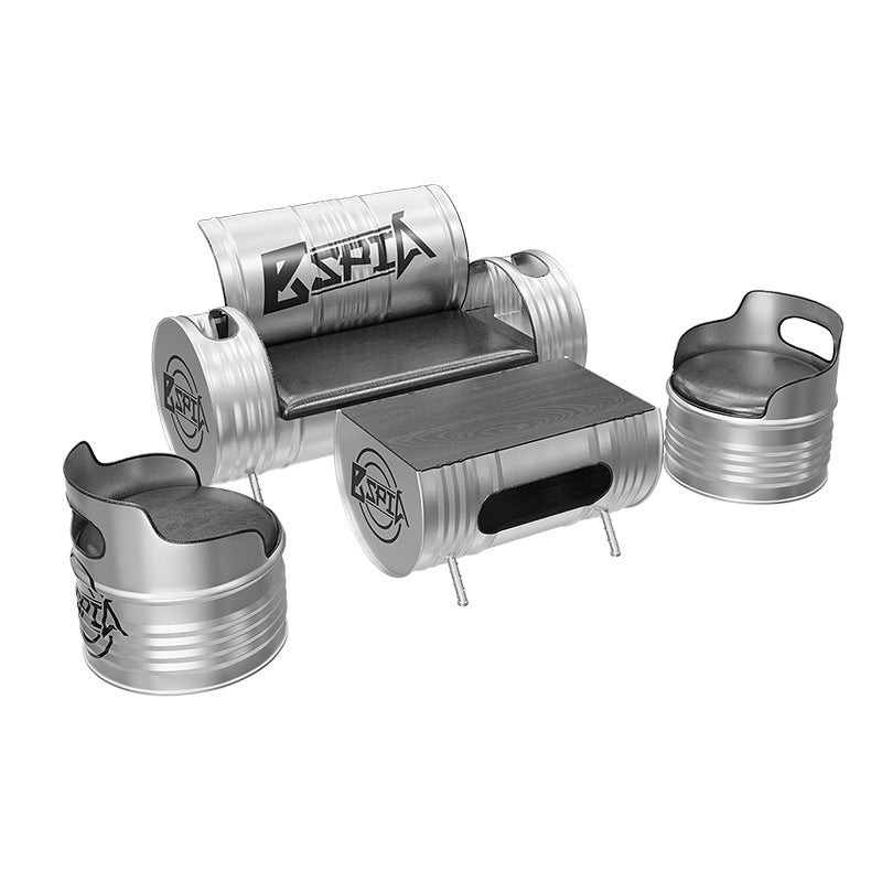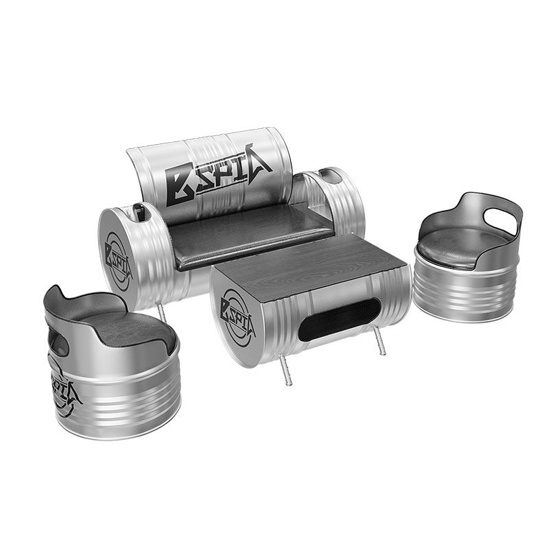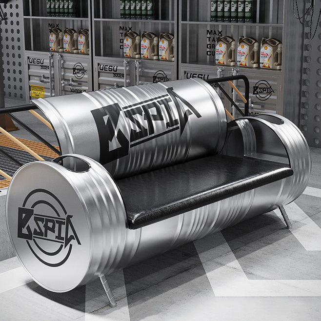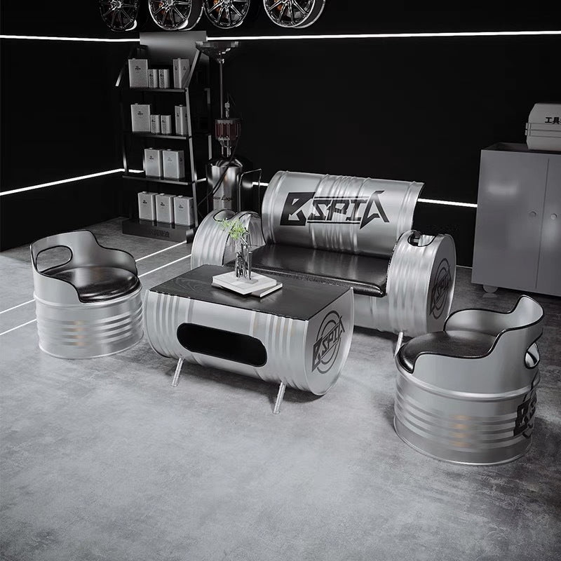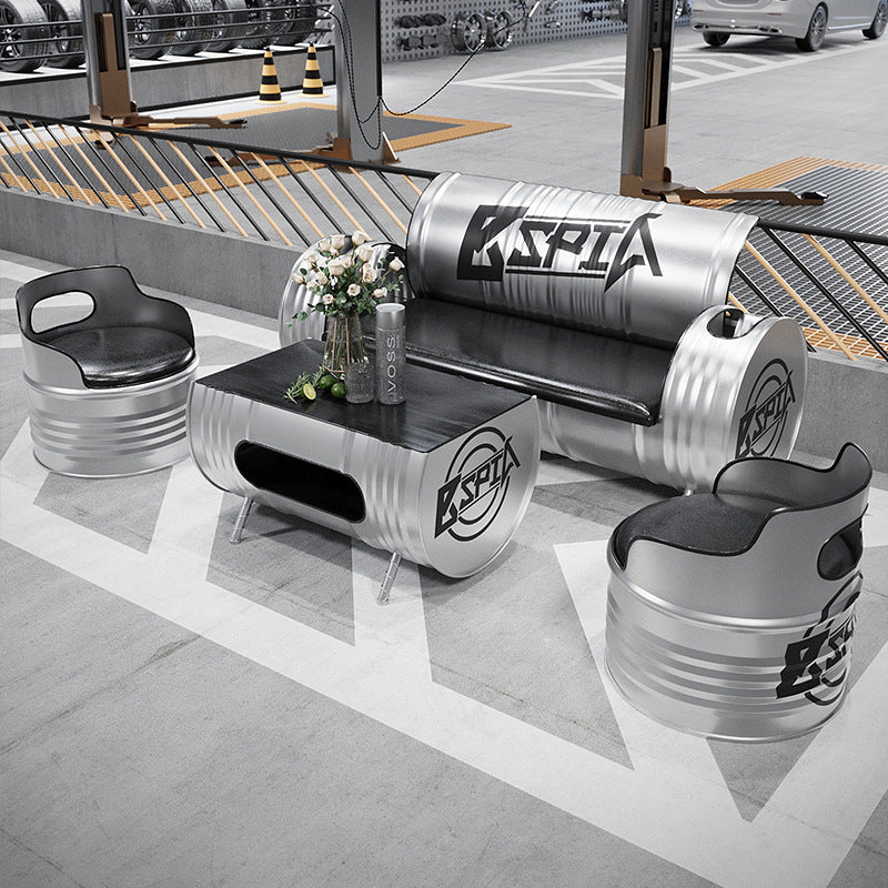 Contemporary Industrial Iron Pine Wood Leather Oil Drum Round Rectangular Coffee Table & Sofa Set For Dining Room